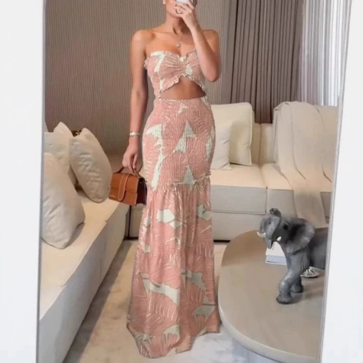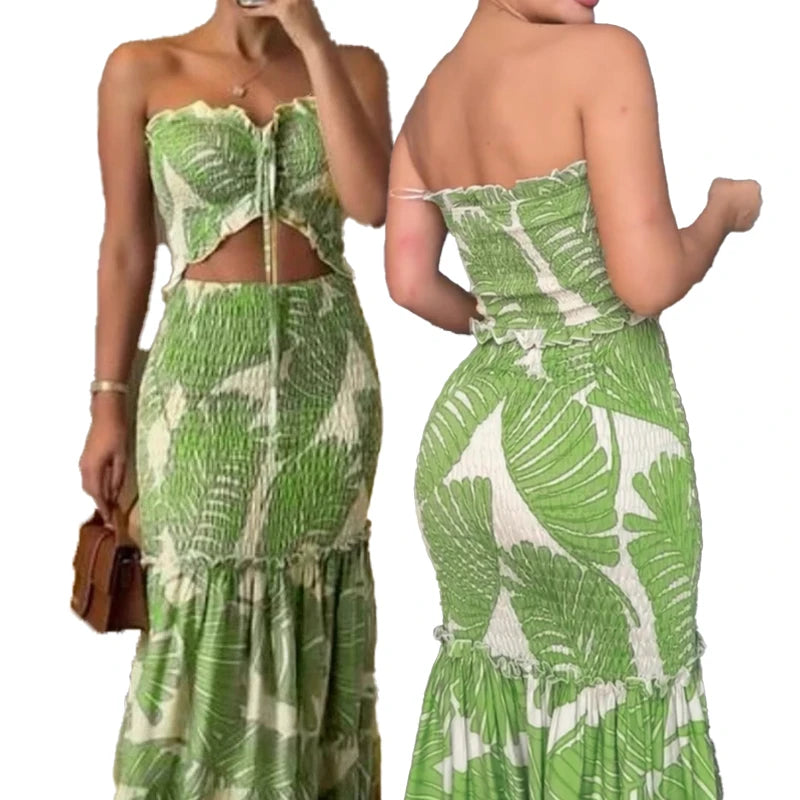 This Alexa dress combines modern European and American styles with a fresh spring and summer vibe. Designed with an off-the-neck neckline and delicate printed pleats, it offers a flattering, body-hugging silhouette.