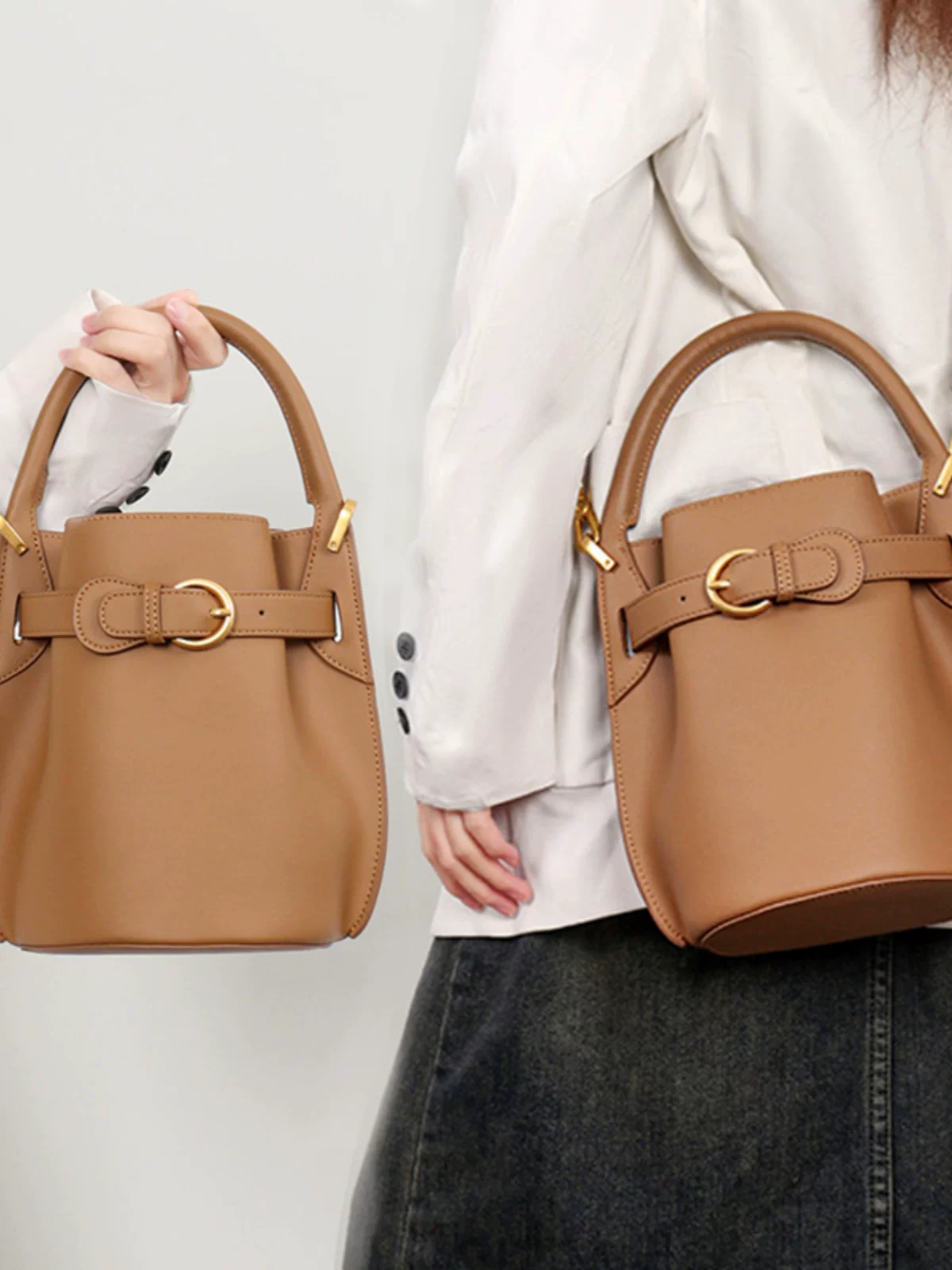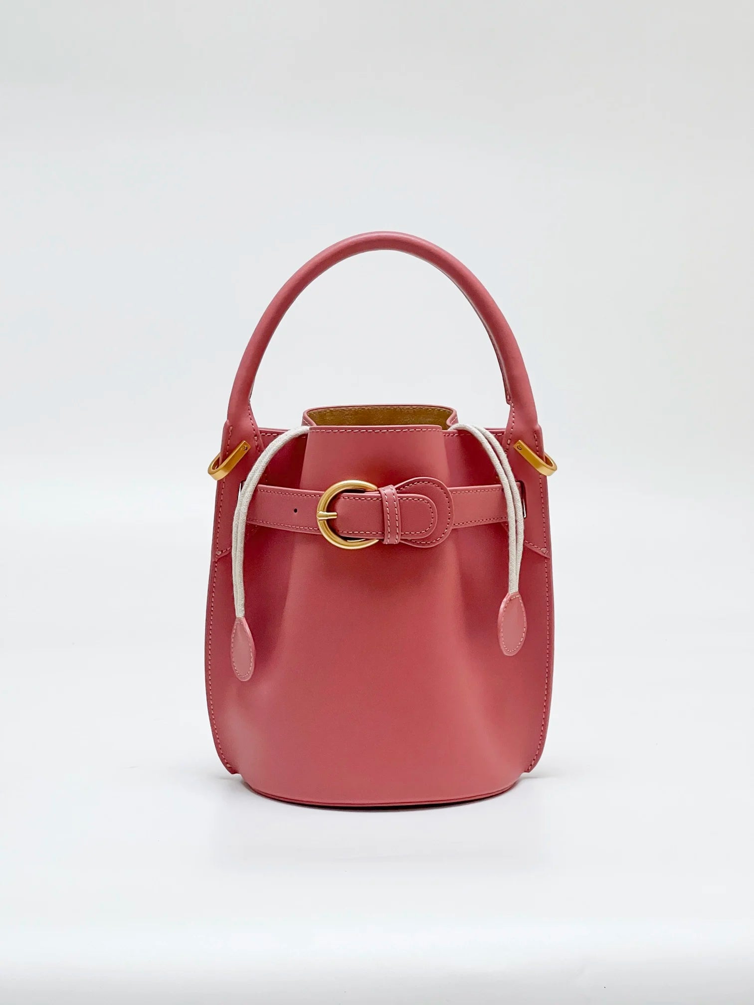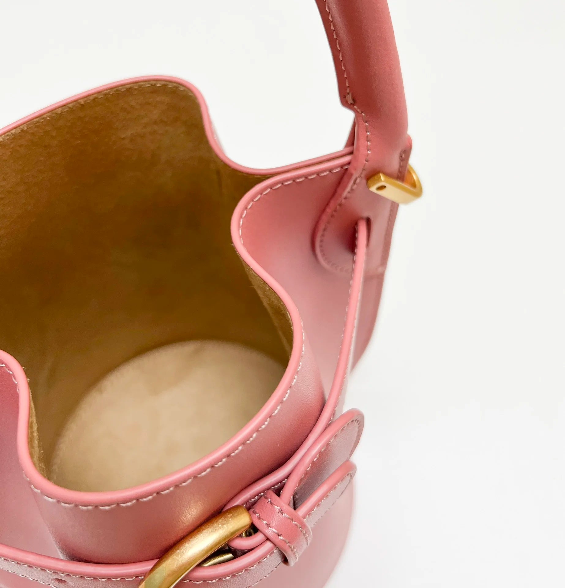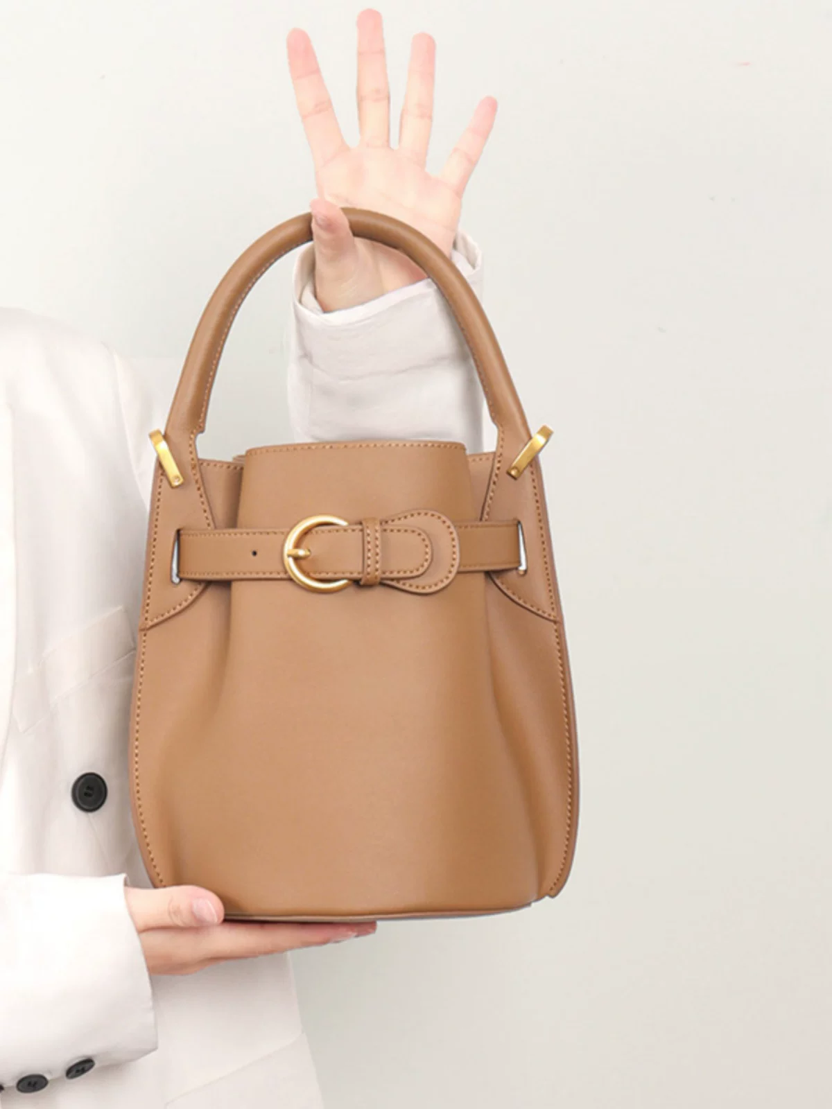 Meet your new favorite bag! Made from genuine leather, this stylish bucket bag features a sturdy top handle and an adjustable strap so you can wear it as a crossbody. The soft drawstring pouch keeps your essentials secure, while the gold-tone hardware adds a chic touch. Available in a variety of beautiful colors perfect for any occasion!
