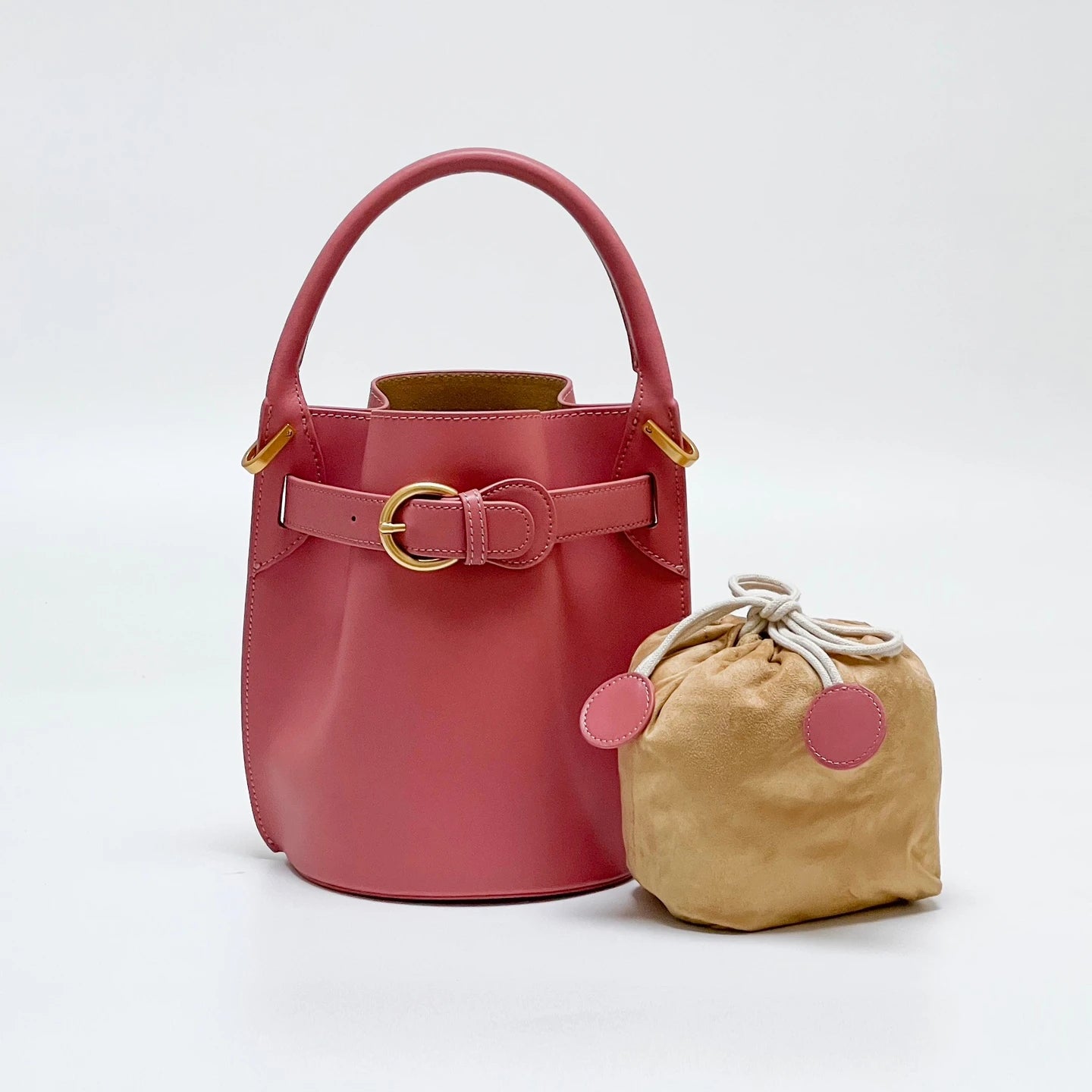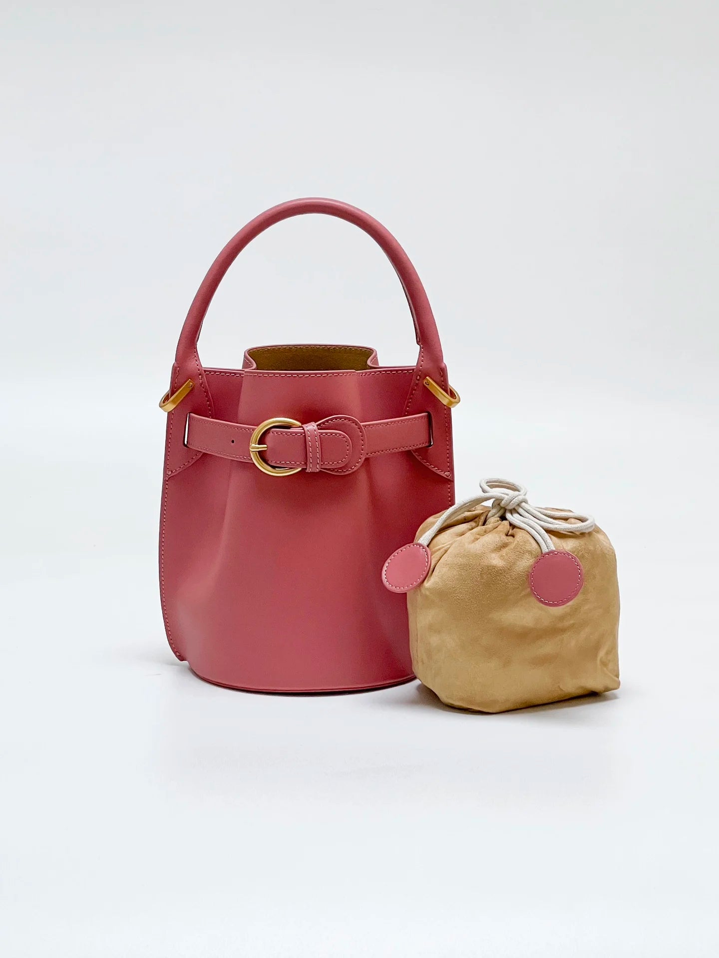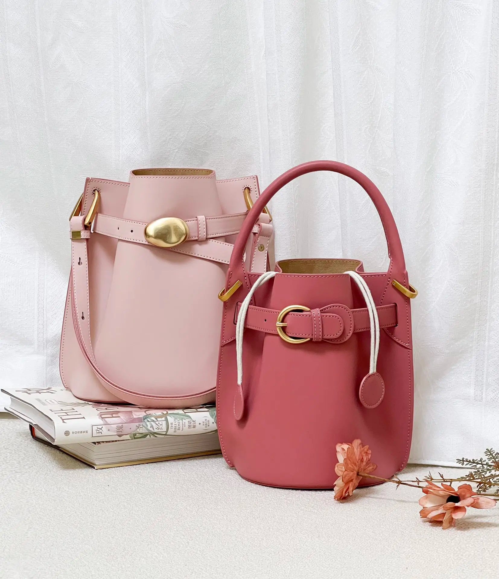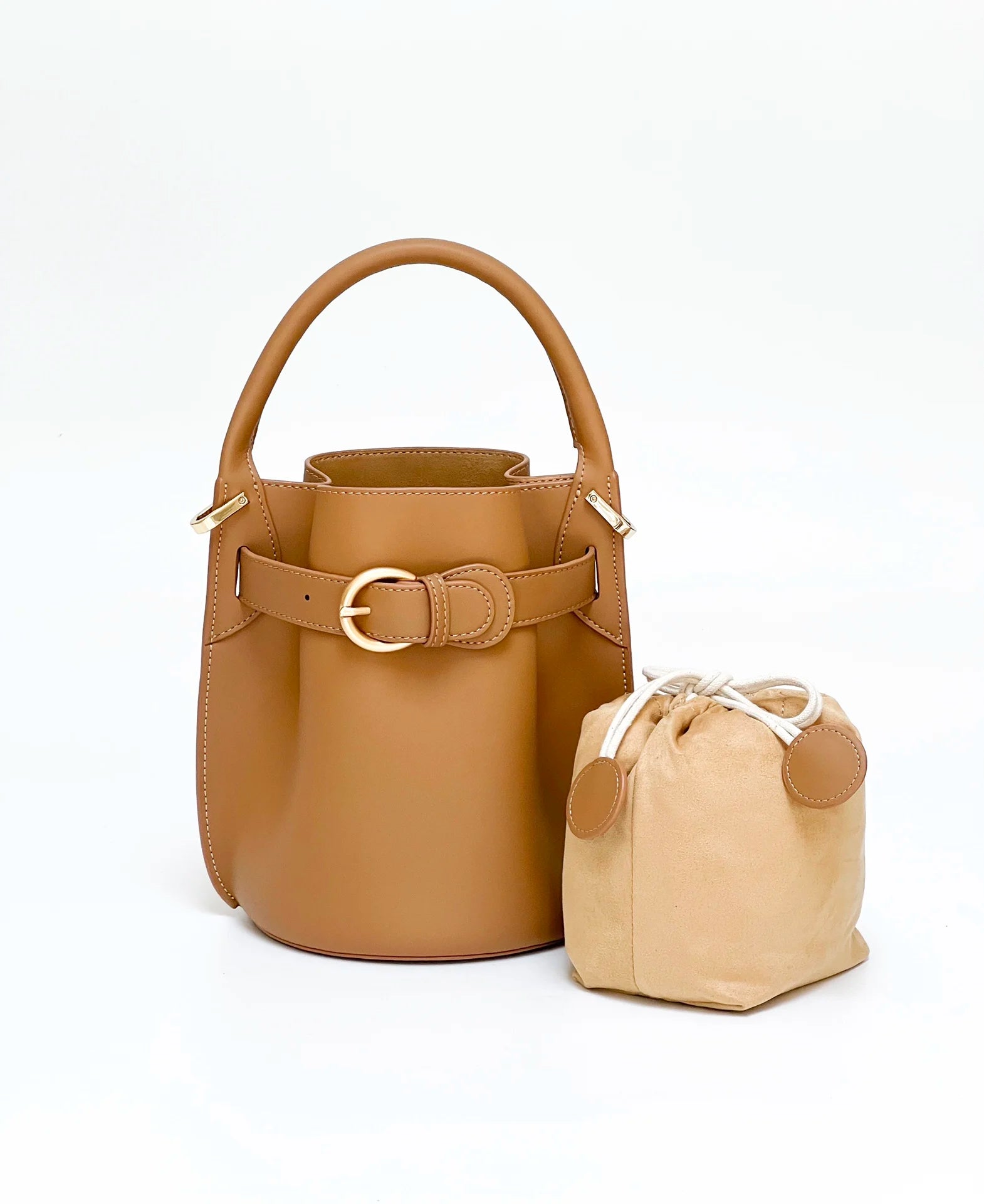 Meet your new favorite bag! Made from genuine leather, this stylish bucket bag features a sturdy top handle and an adjustable strap so you can wear it as a crossbody. The soft drawstring pouch keeps your essentials secure, while the gold-tone hardware adds a chic touch. Available in a variety of beautiful colors perfect for any occasion!