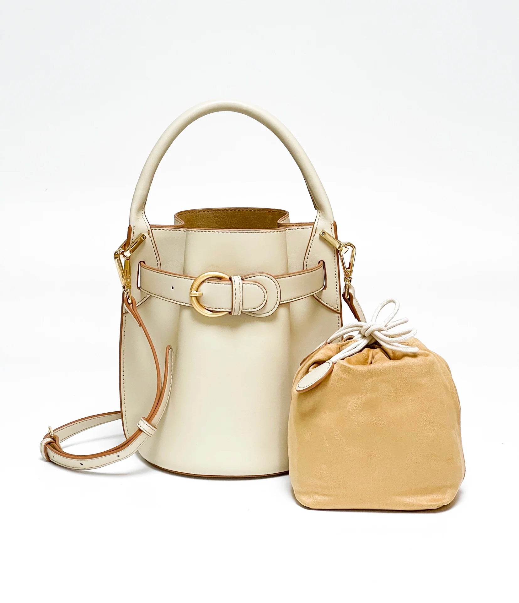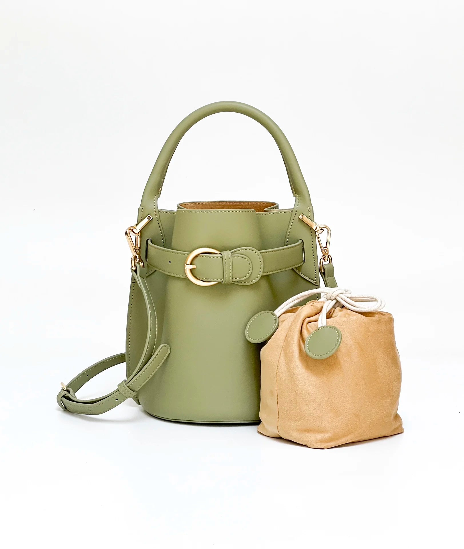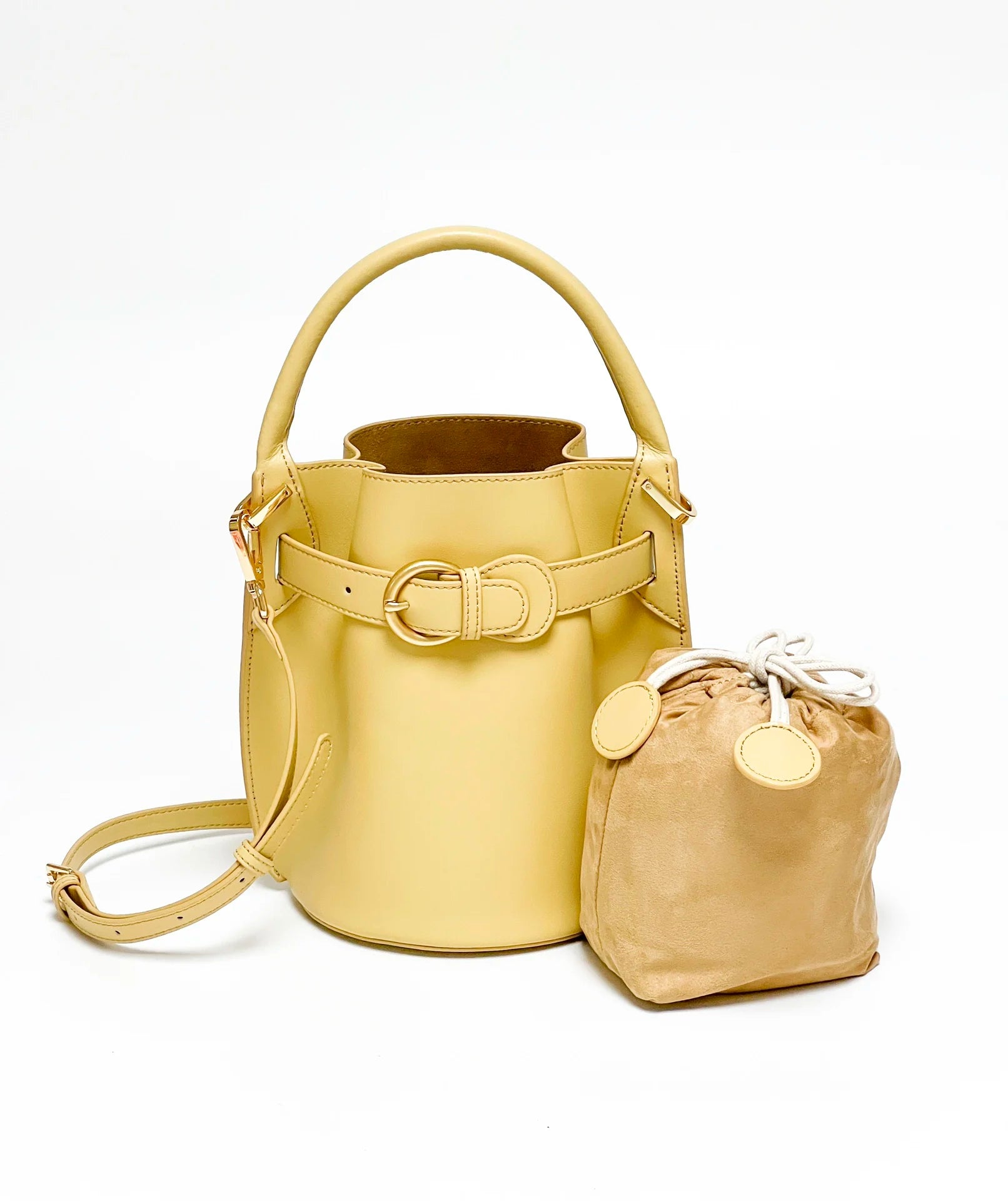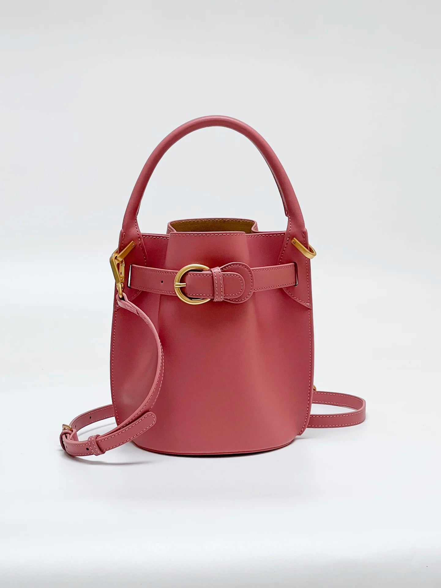Meet your new favorite bag! Made from genuine leather, this stylish bucket bag features a sturdy top handle and an adjustable strap so you can wear it as a crossbody. The soft drawstring pouch keeps your essentials secure, while the gold-tone hardware adds a chic touch. Available in a variety of beautiful colors perfect for any occasion!