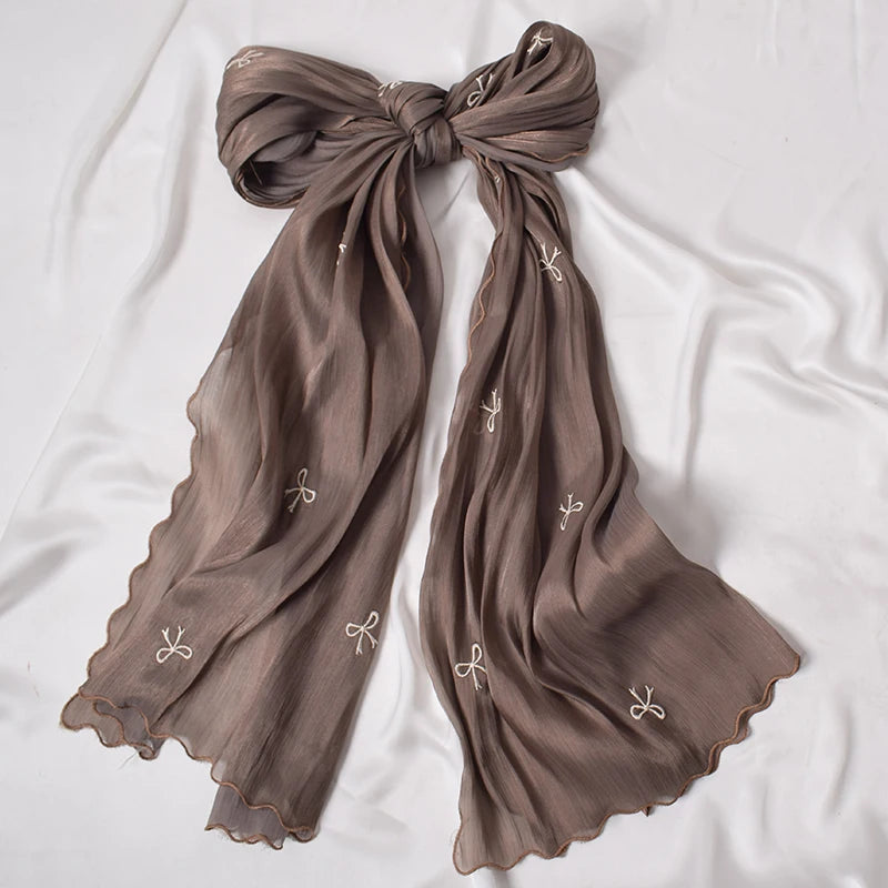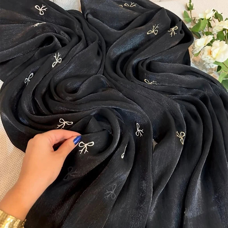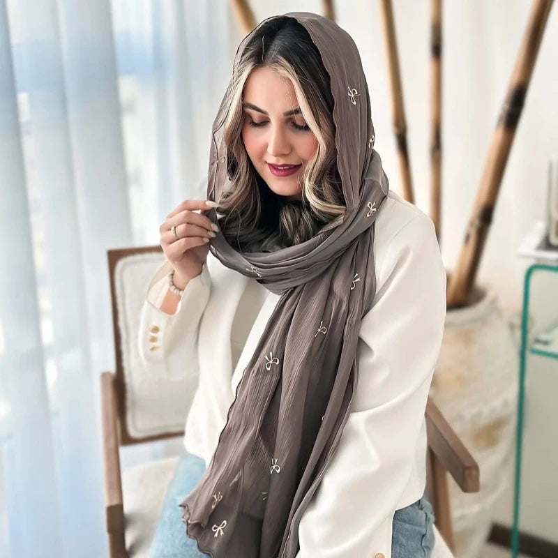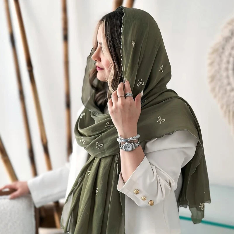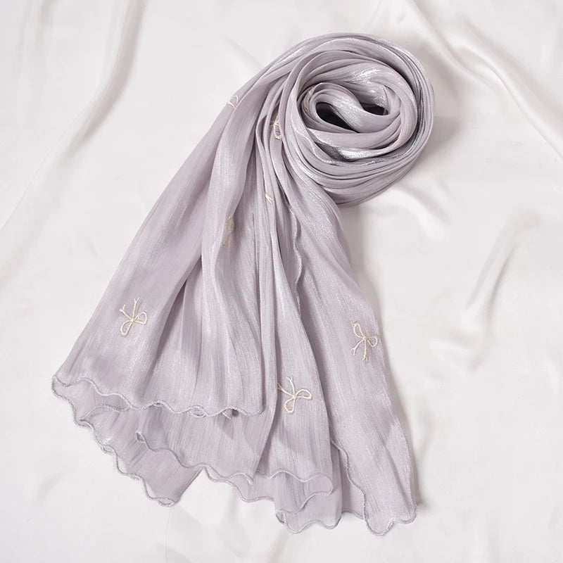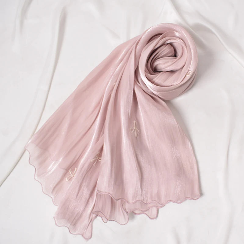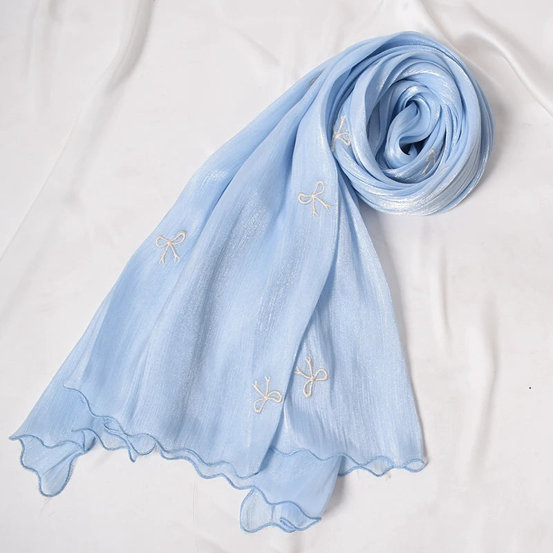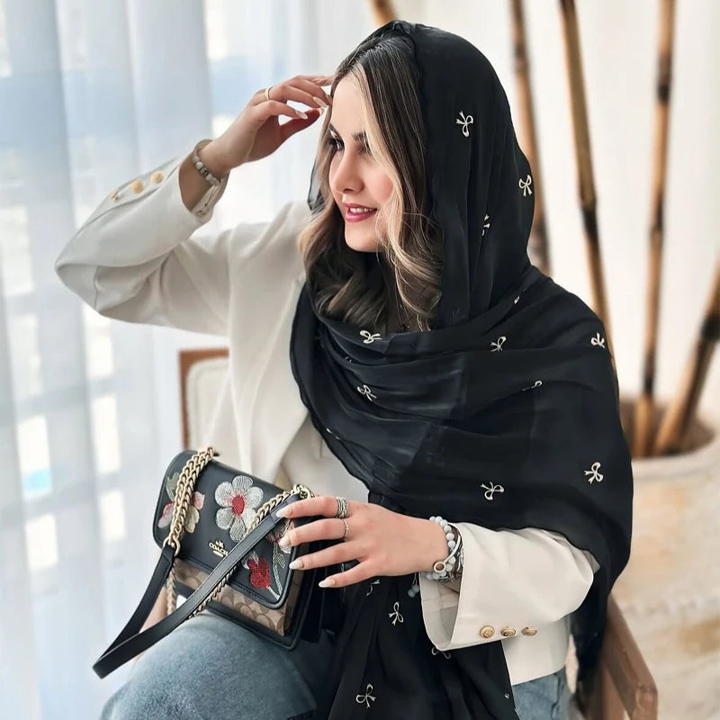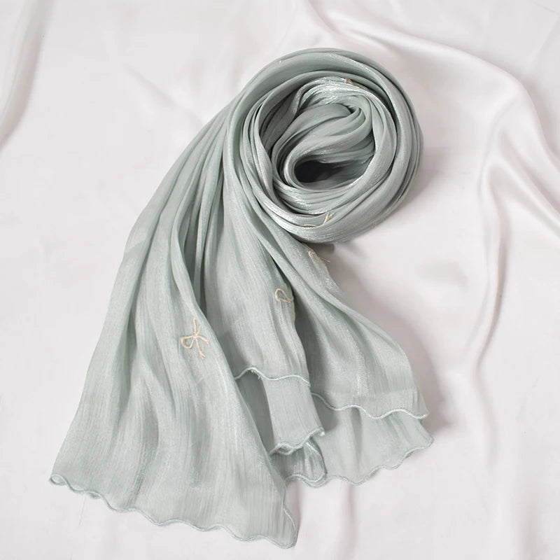 The Aisha chiffon shawl features delicate embroidery and a solid color design, measuring 190x65cm and weighing just 0.2kg. Its lightweight, breathable fabric ensures comfort and ease of styling, making it an ideal choice for ethnic wear or everyday use. This versatile scarf combines elegance with practicality for a refined look.