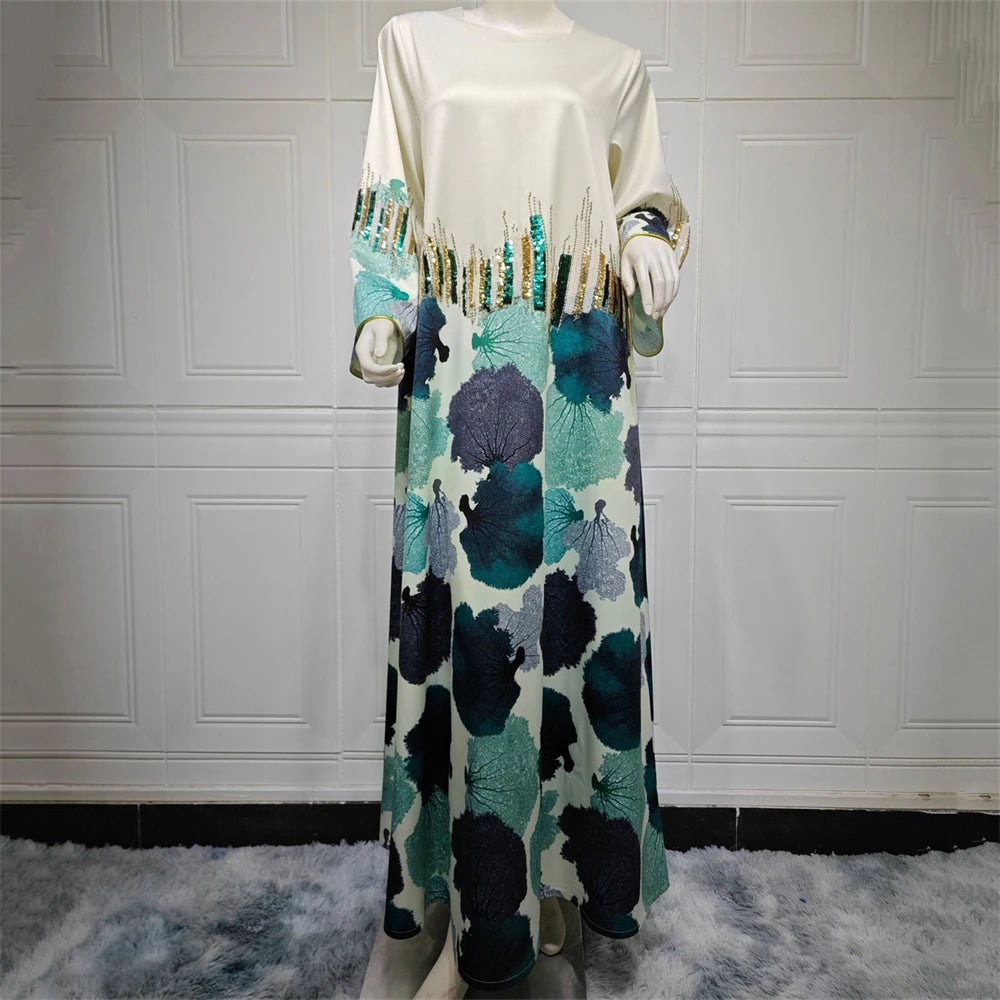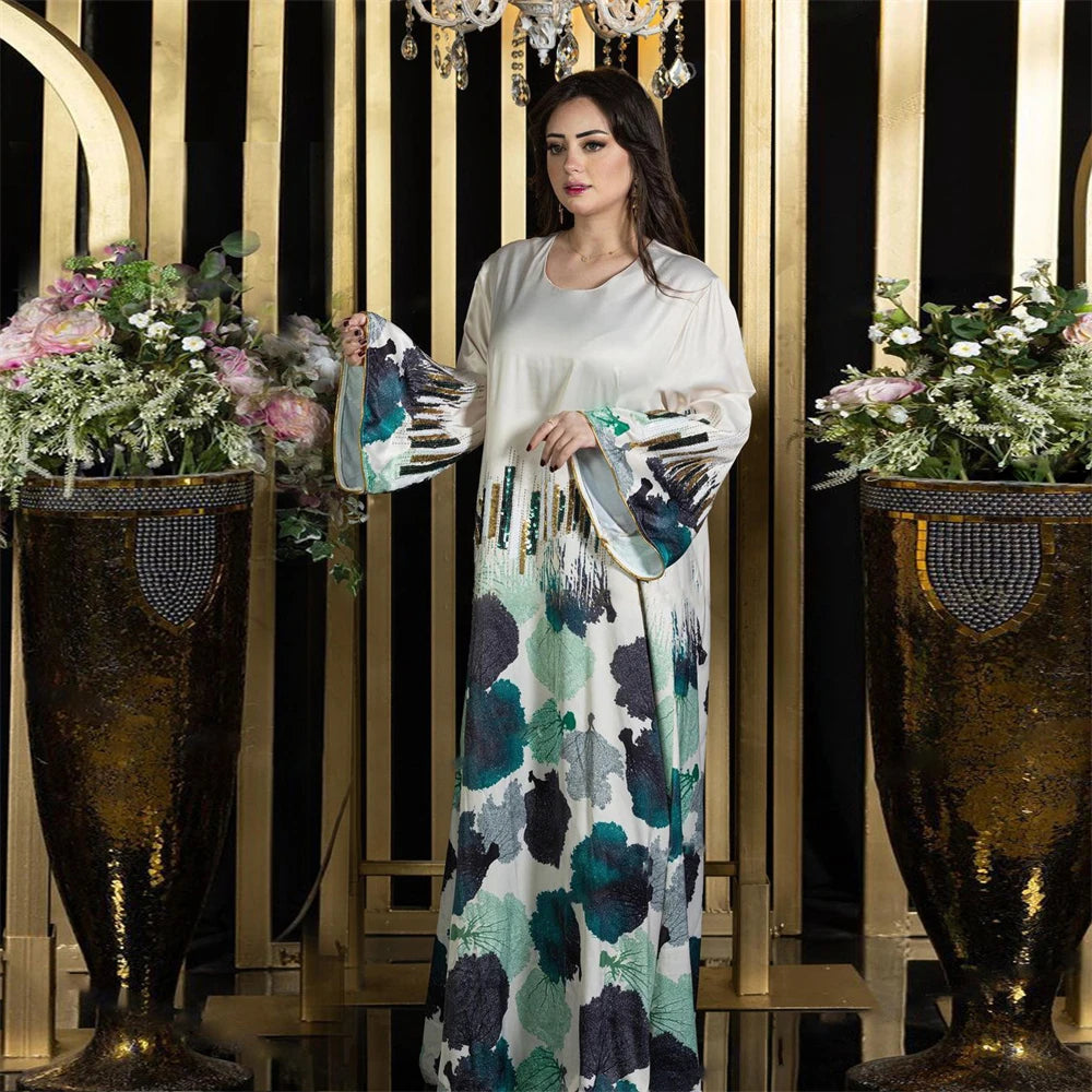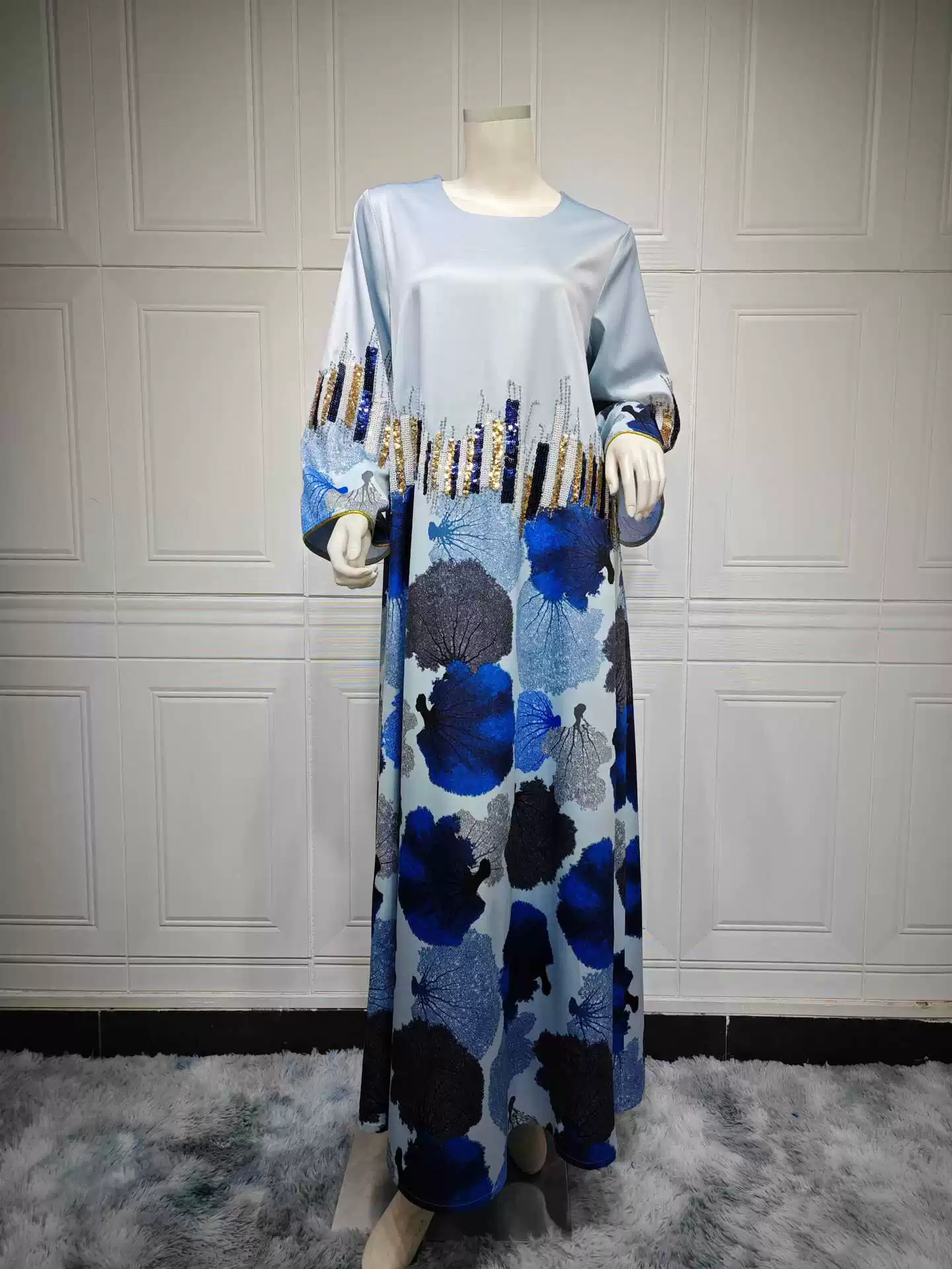 Add a touch of glamour to your wardrobe with Amira, the stunning Arabic dress featuring a dazzling glitter sequin floral pattern. Made with premium quality fabric, this dress is perfect for any special occasion. Elevate your style and turn heads with Amira.