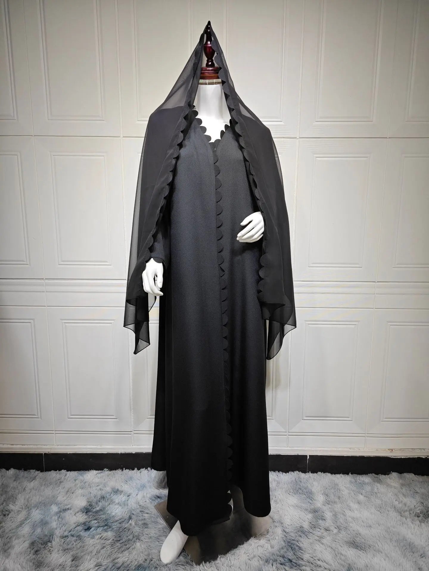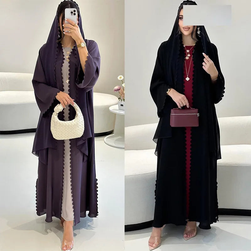 Introducing Ammal, a stunning open abaya set with a matching hijab. Its solid color and layer lining design make it versatile for any occasion. Made with high quality materials for comfort and style. Elevate your wardrobe with Ammal.