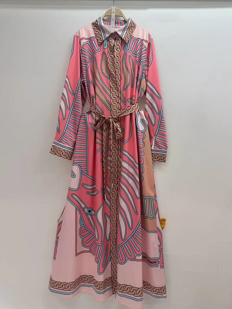 Introducing the Anabelle shirtdress, a fashion-forward piece perfect for the upcoming spring season. With a vintage geometric print, lace-up waist, and long-sleeved design, this dress combines style and comfort effortlessly. Look and feel your best with this loose straight skirt, available now.
