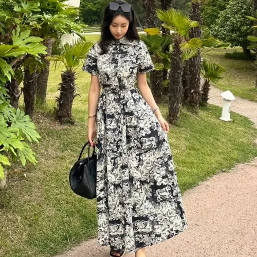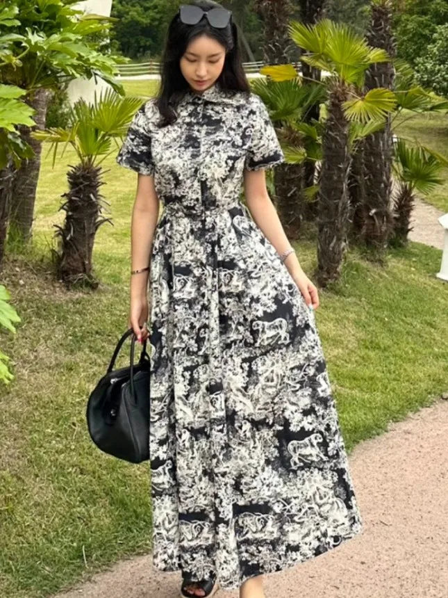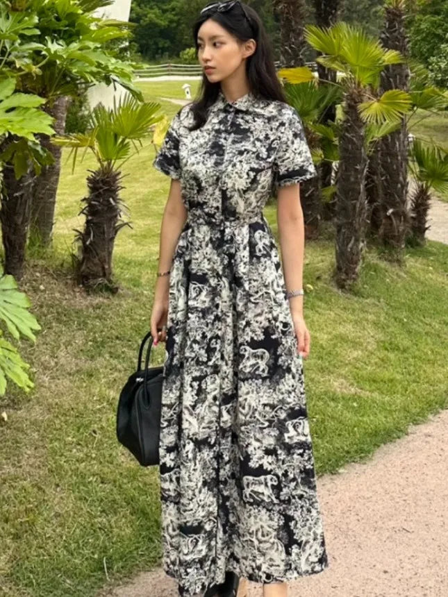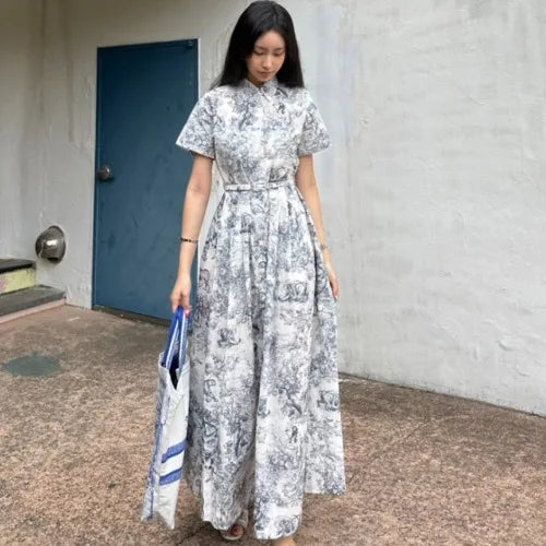 The Anderea dress showcases a refined blend of classic floral patterns and modern tailoring, designed for the discerning wardrobe. This elegantly fitted maxi dress features short sleeves, offering both comfort and style that adapt effortlessly from warm summer days to crisp autumn evenings. Its silhouette enhances natural shape while maintaining a poised, sophisticated look suitable for various occasions.