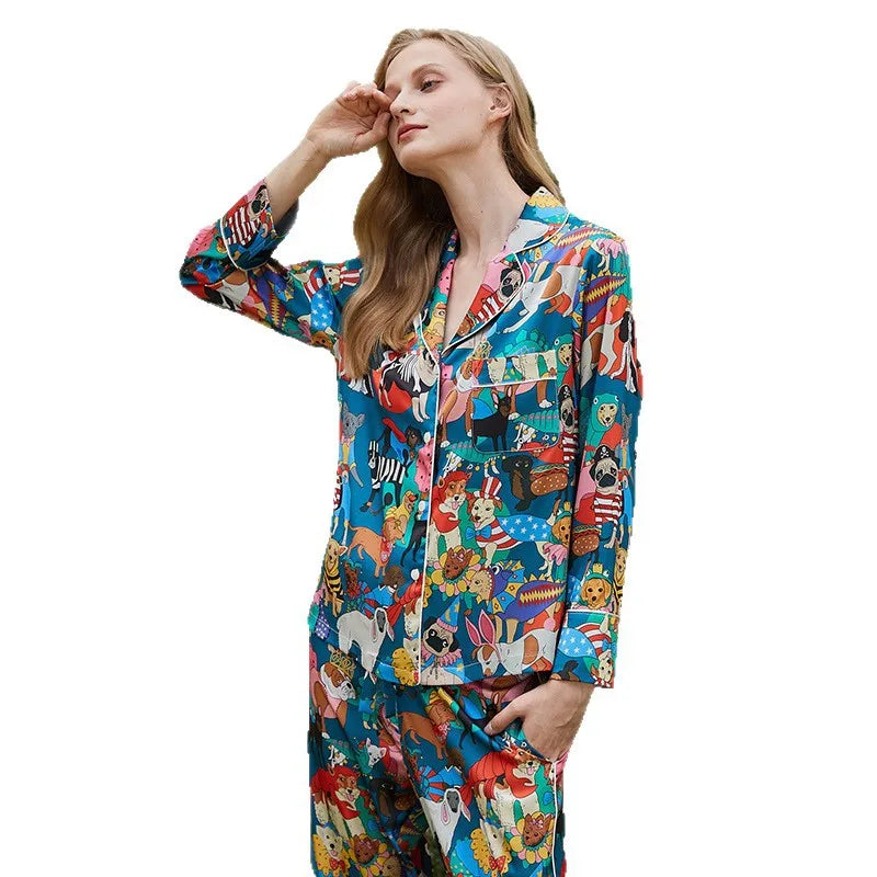Experience refined comfort with this Animal Print Long Sleeved Ice Silk Sleepwear set. Designed for spring and autumn, its lightweight, breathable fabric ensures a cool, soft feel while the stylish printed cardigan adds a touch of luxury. Perfect for casual home wear, this set blends elegance with relaxed ease for restful nights and leisurely days.
