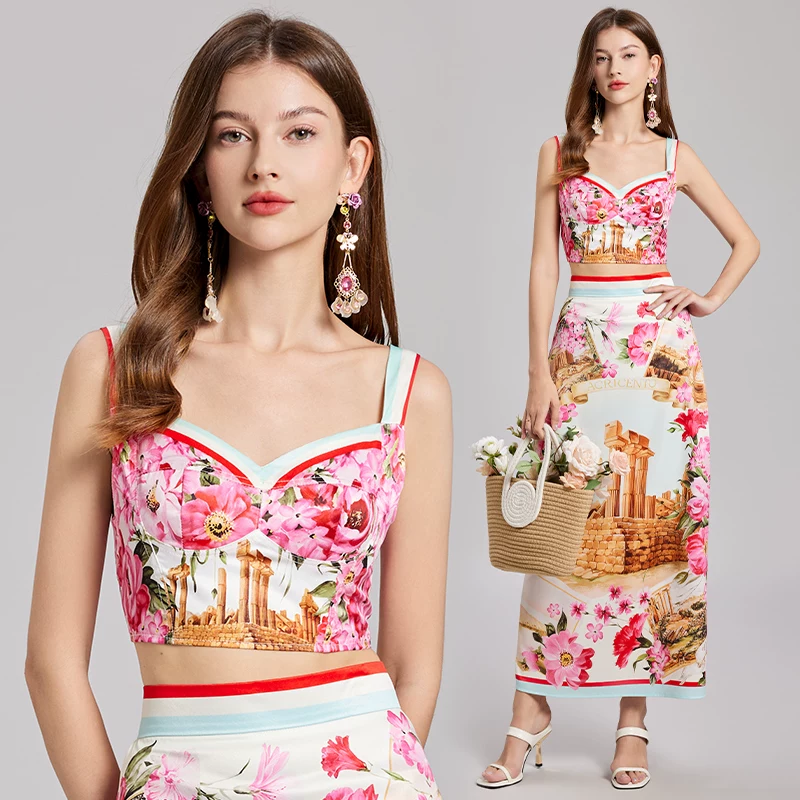 Discover comfort and style with our Ara summer print splicing two-piece set. Featuring a three-dimensional strapless sling, this dress offers a perfect fit and a unique look. The chest cushion provides added support and the lightweight material makes it perfect for the summer season. Transform your wardrobe with Ara.