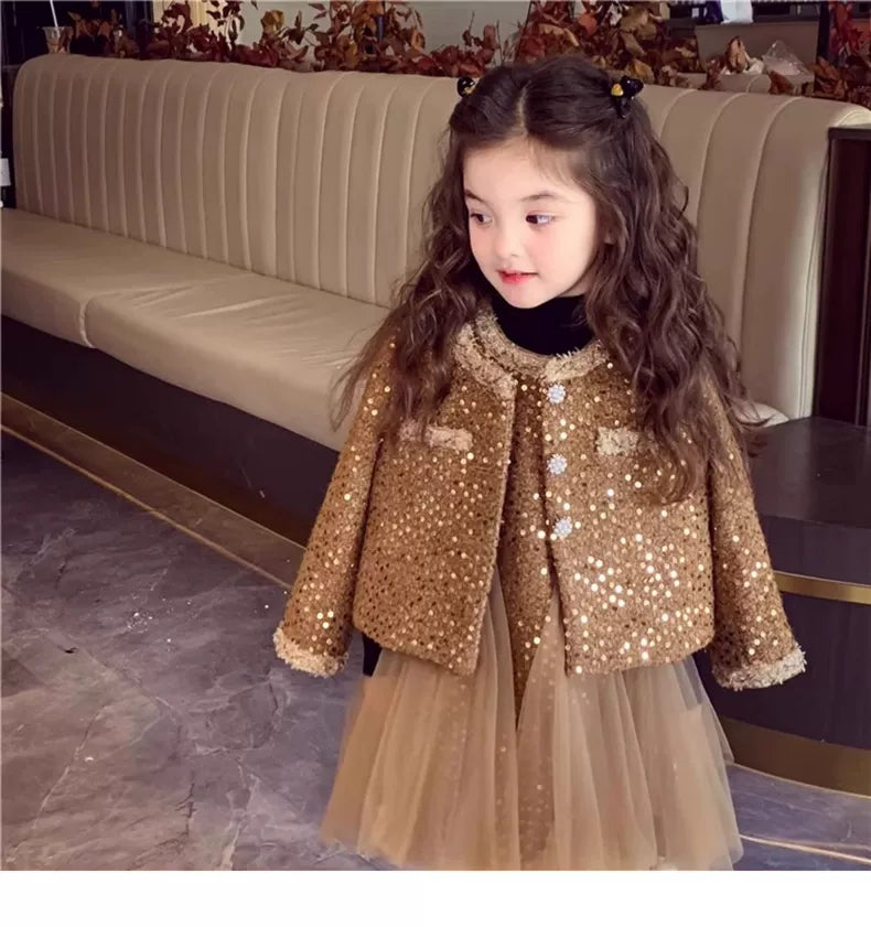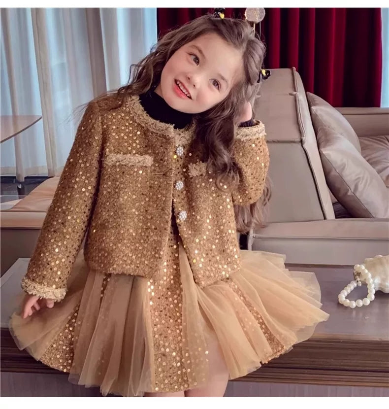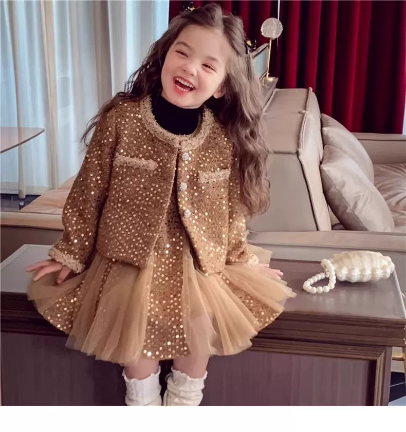 The Ariana tweed suit is the perfect choice for your little girl this autumn and winter. This stylish set includes a long-sleeved jacket and vest dress, keeping her warm and fashionable. Made with high-quality tweed, it offers both comfort and durability. Elevate her wardrobe with this timeless and chic outfit.