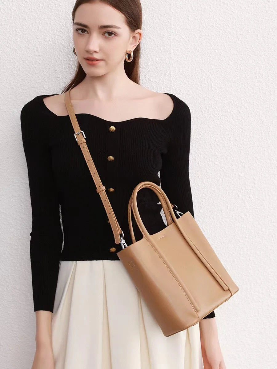 The Celina handbag combines genuine cowhide leather craftsmanship with a sleek, minimalist design, ideal for professional women. Its spacious interior offers ample room for work essentials, while the single shoulder strap ensures comfortable, all-day wear. Durable and stylish, this large-capacity bag is a practical choice for those seeking both functionality and elegance in their daily carry.