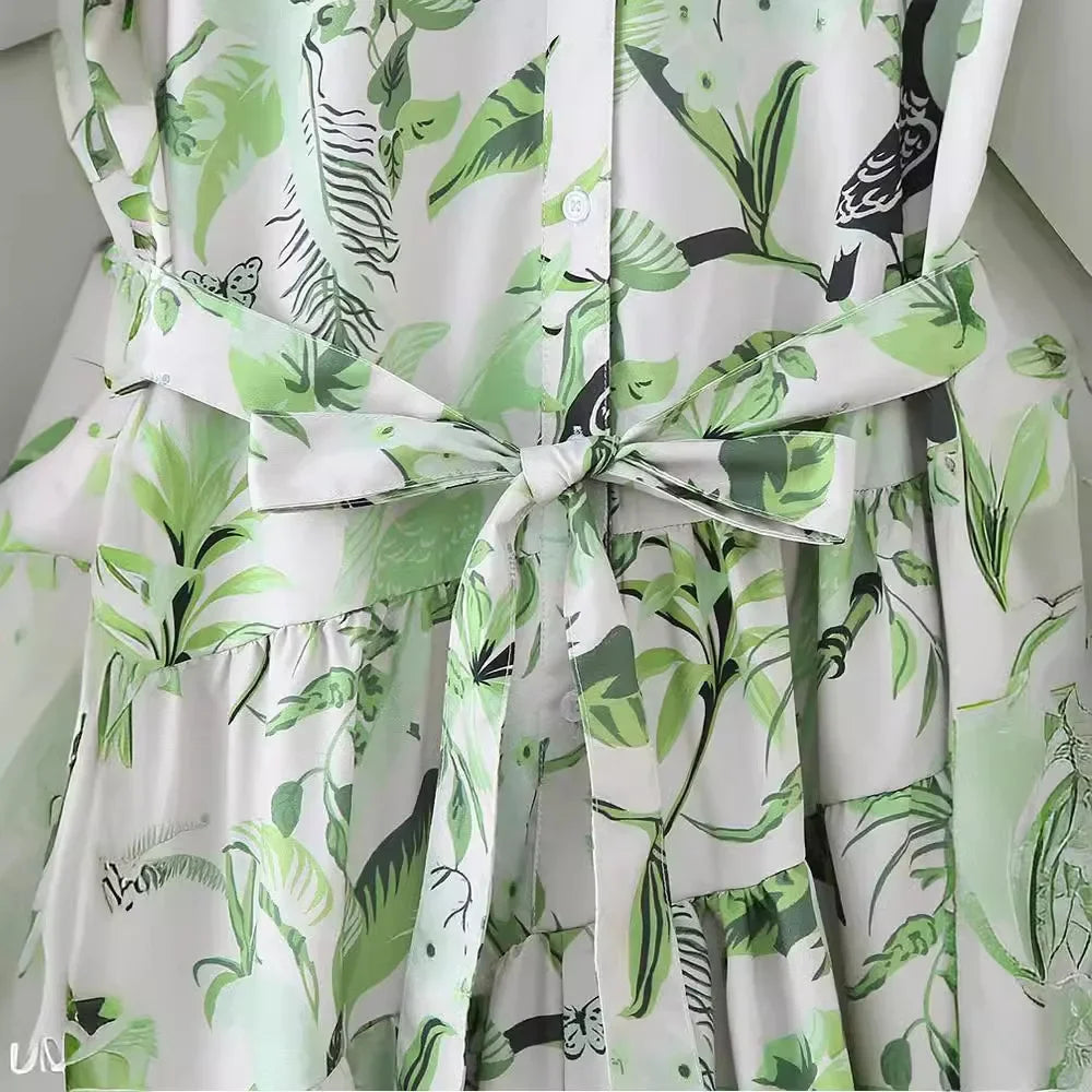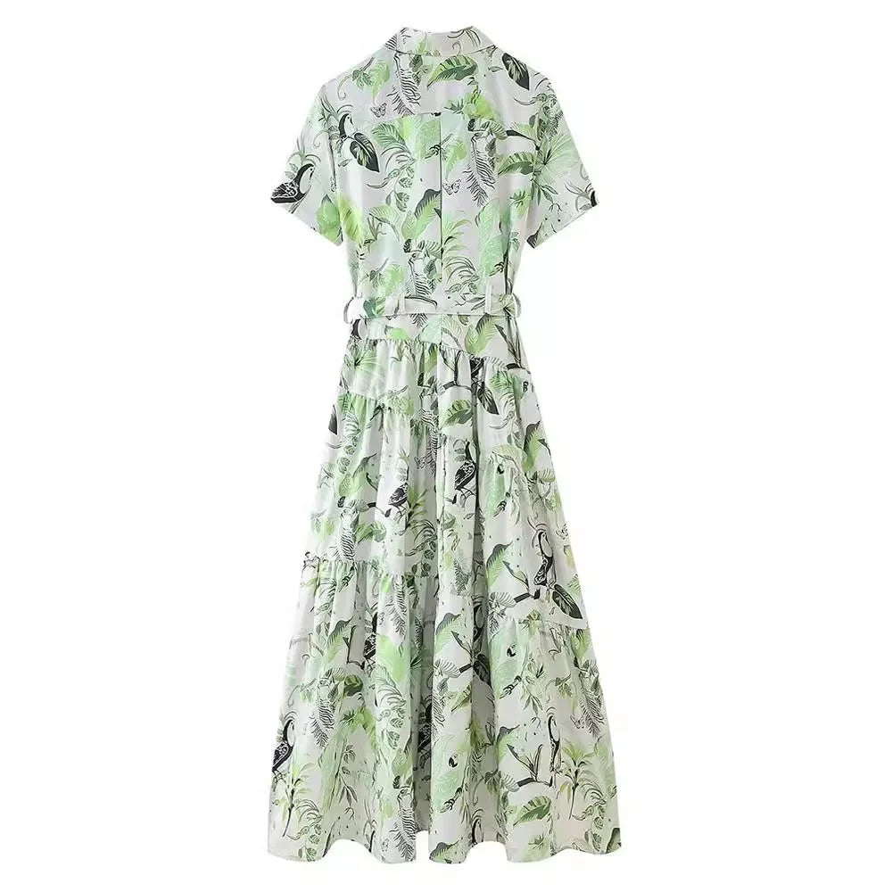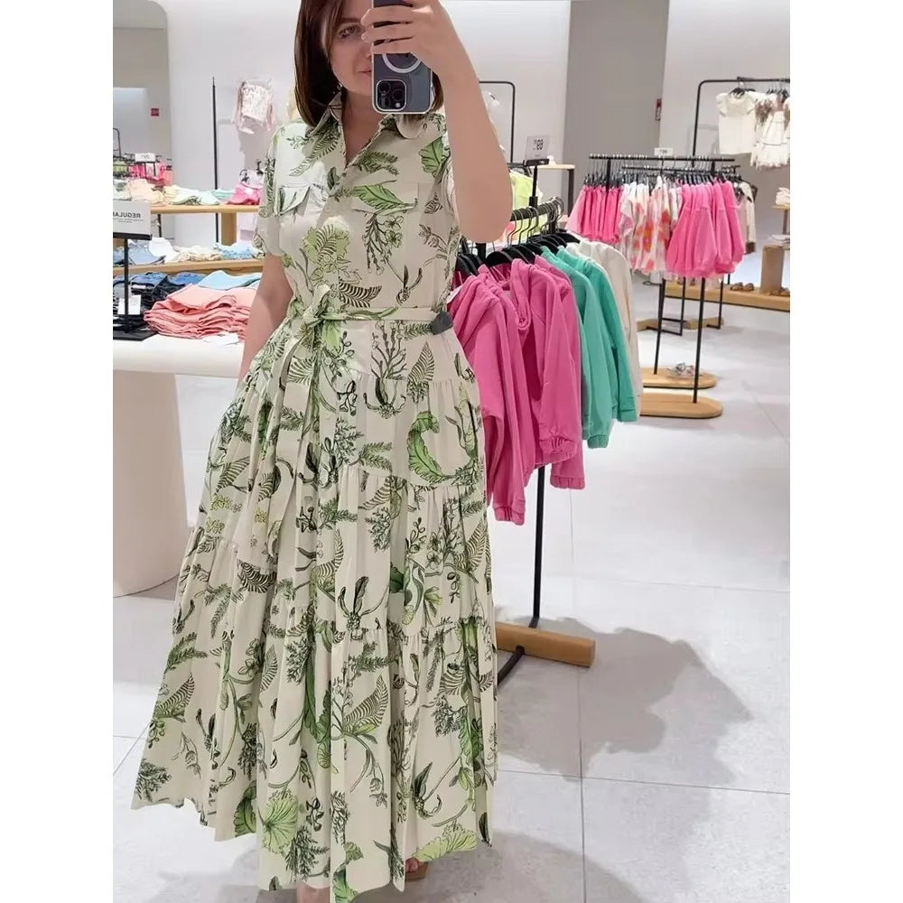 The Charie dress offers a refined summer look with its fresh printed fabric and short sleeves that ensure comfort in warm weather. Designed with an elegant single-breasted lapel and a lace-up waist, it shapes the silhouette while allowing adjustable fit. The maxi length creates a dramatic big swing effect, combining sophistication with ease of movement for versatile day-to-evening wear.