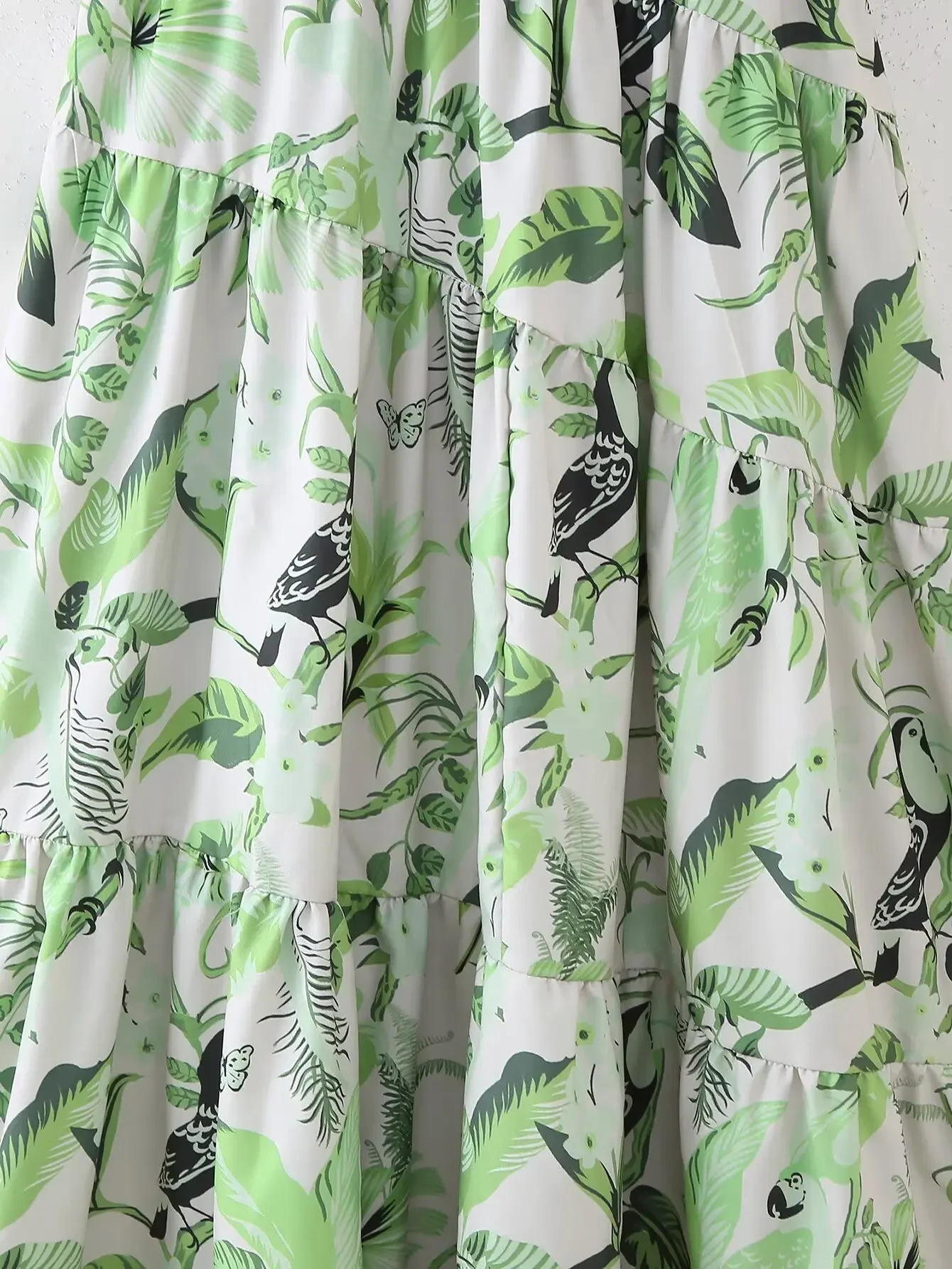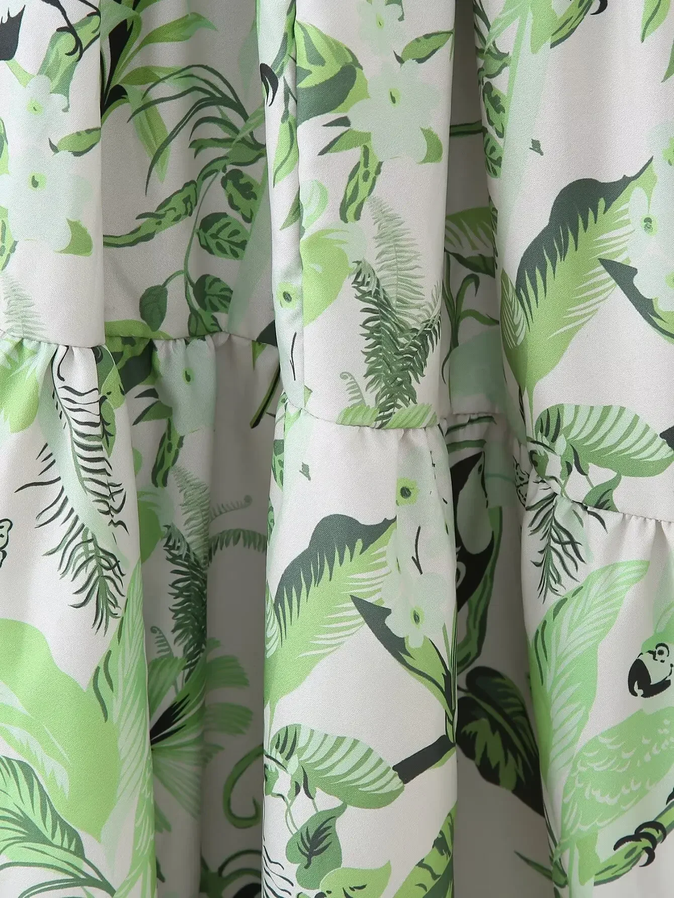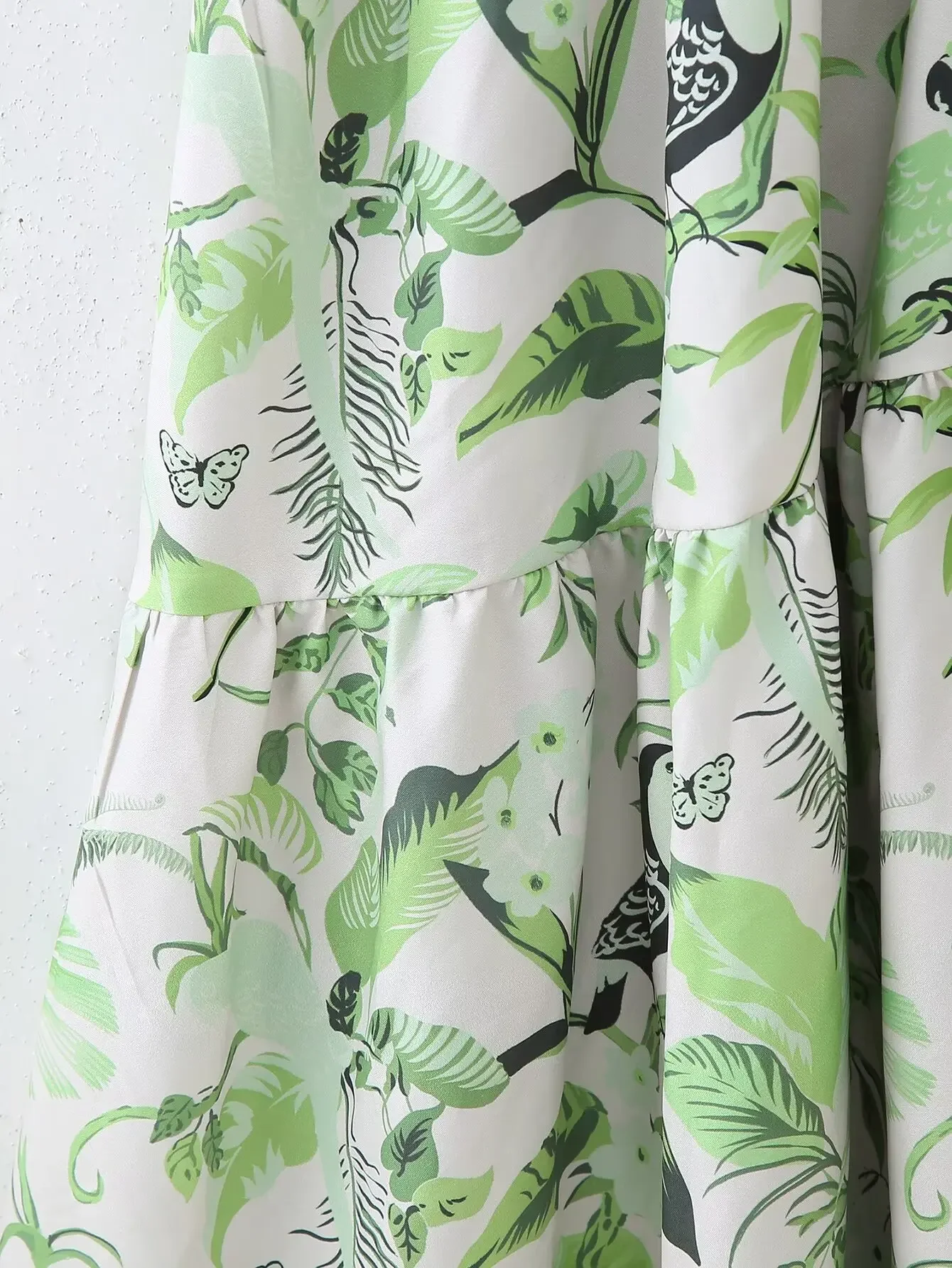 The Charie dress offers a refined summer look with its fresh printed fabric and short sleeves that ensure comfort in warm weather. Designed with an elegant single-breasted lapel and a lace-up waist, it shapes the silhouette while allowing adjustable fit. The maxi length creates a dramatic big swing effect, combining sophistication with ease of movement for versatile day-to-evening wear.
