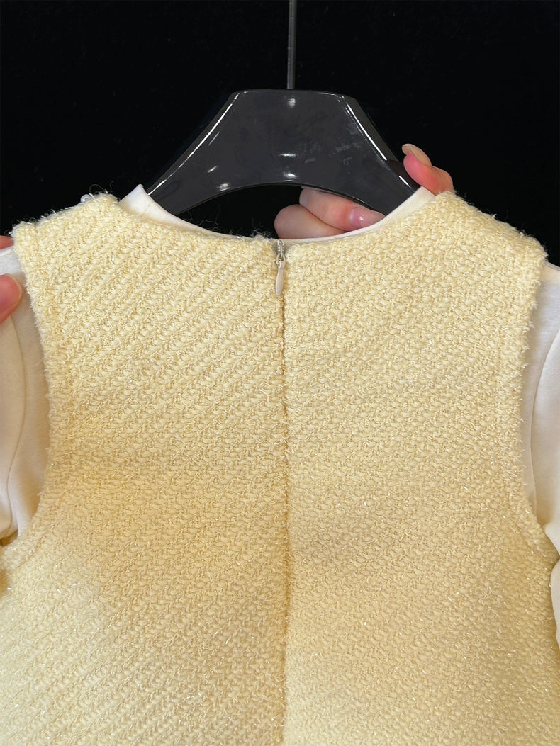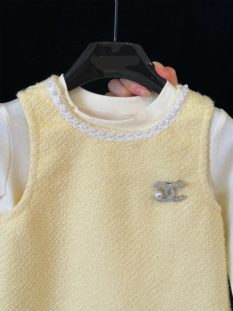 Introducing Charmie, the stylish and sophisticated dress set for your little fashionista. Inspired by CHANEL, this set features a new and trendy design. Perfect for your baby girl to stand out and make a statement. Elevate her style with Charmie.