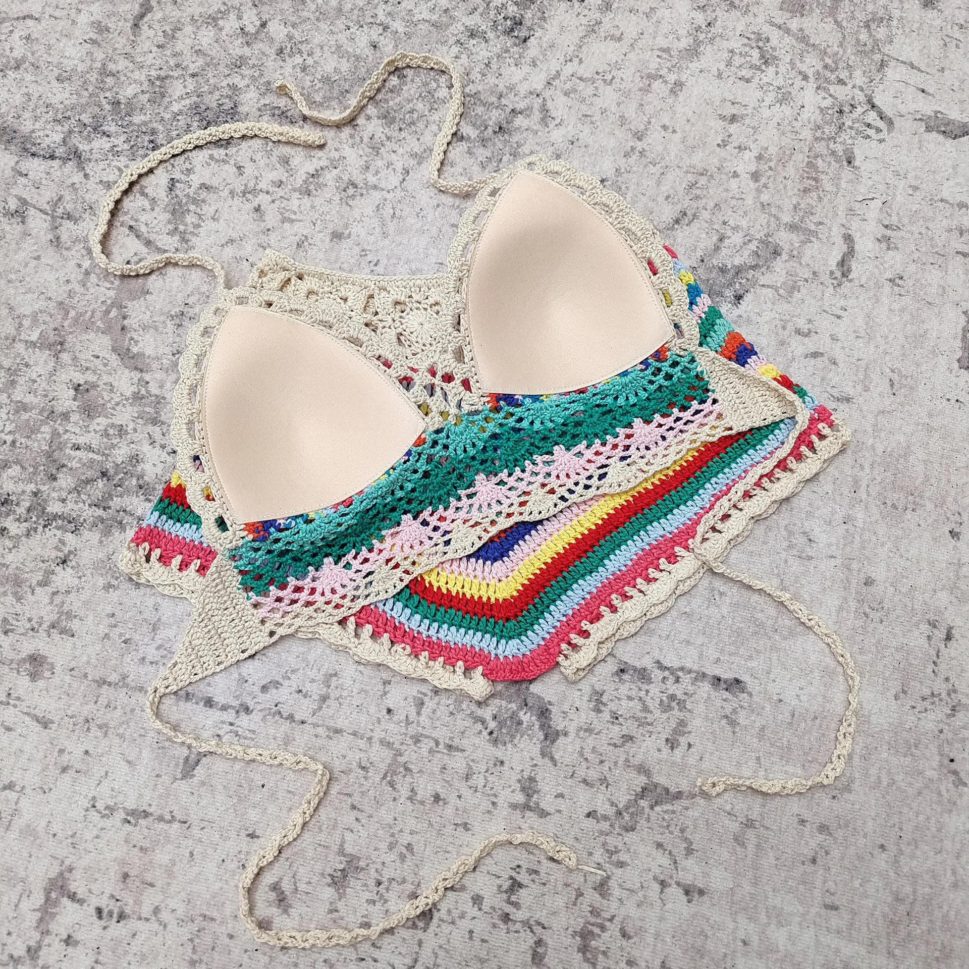 This expertly crafted Coloured Crochet Bikini Set features handmade crochet shorts and a matching top, blending vibrant hues with durable construction. The breathable crochet material offers comfort and flexibility, making it perfect for swimming or sunbathing. Its distinctive design adds a touch of artisanal elegance to your beachwear collection, ensuring you stand out with both style and quality.