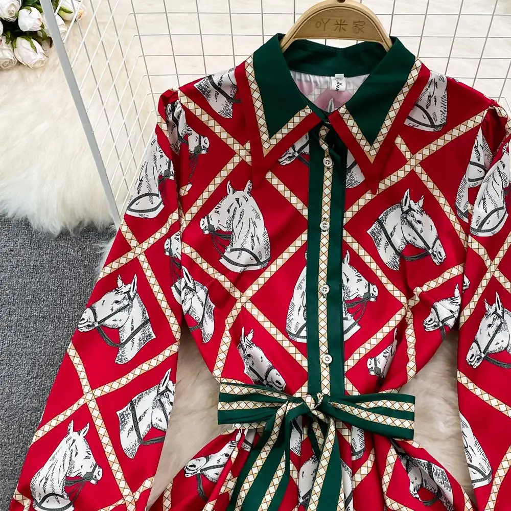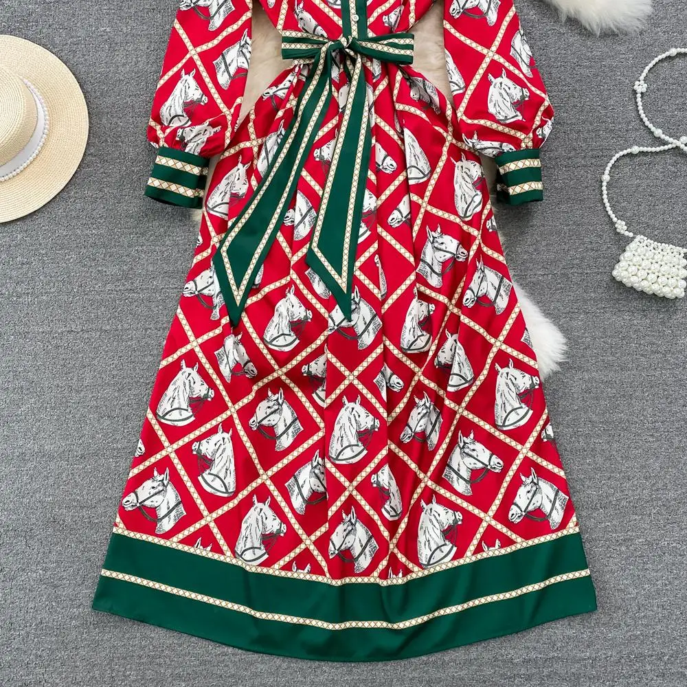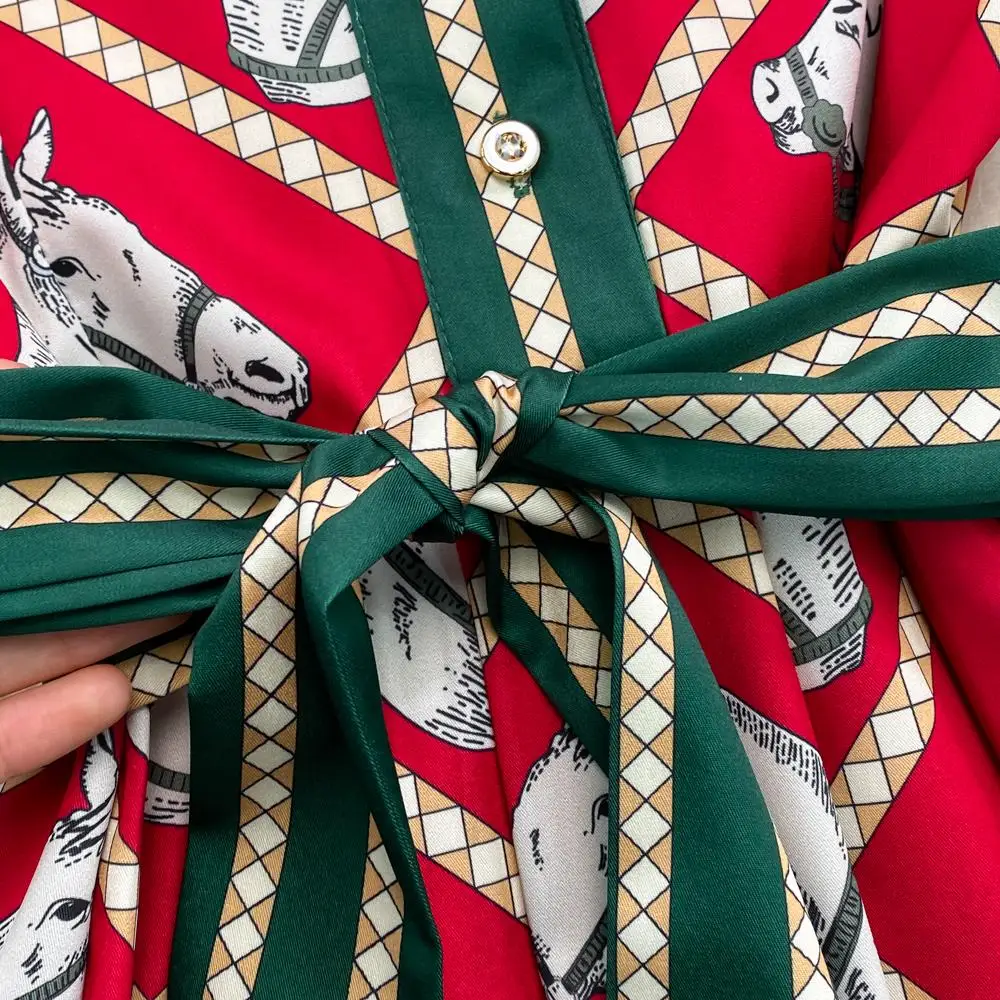 Elevate your wardrobe with the Dianne maxi dress, featuring a sophisticated plaid pattern combined with a striking animal horse print. Designed with a lapel collar and long sleeves, this dress offers a refined silhouette enhanced by a delicate bow lace-up detail and contrasting color accents. Perfect for those seeking a blend of classic elegance and contemporary style, the Dianne dress provides both comfort and statement-making appeal for any occasion.