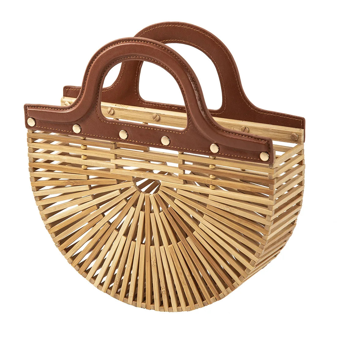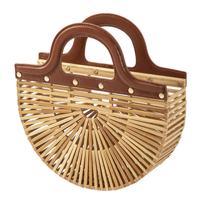 This handmade hollow-out bamboo bag offers a unique blend of craftsmanship and functionality. Featuring a breathable, open-weave bamboo design, it is perfectly suited for beach trips or casual outings. The leather handles provide durability and a comfortable grip, ensuring the bag stands up to daily use while maintaining a sophisticated look. Ideal for women seeking a stylish, eco-friendly tote that combines natural materials with expert construction.
