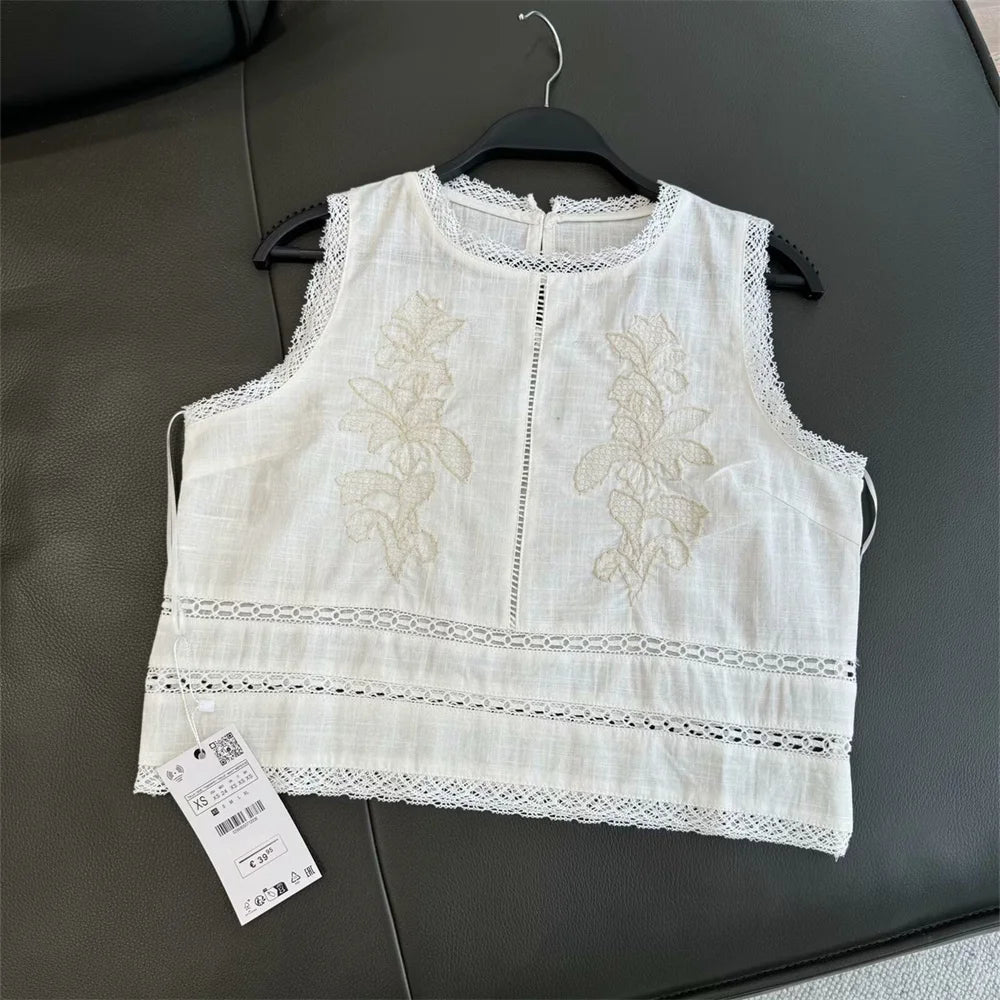 The Isabelle set features a casual high-waist embroidered skirt paired with a sleeveless O-neck crop top, designed for summer wear. This combination offers a comfortable fit with detailed embroidery that adds a touch of elegance. Ideal for warm weather, it provides a stylish yet relaxed look suitable for various casual occasions.