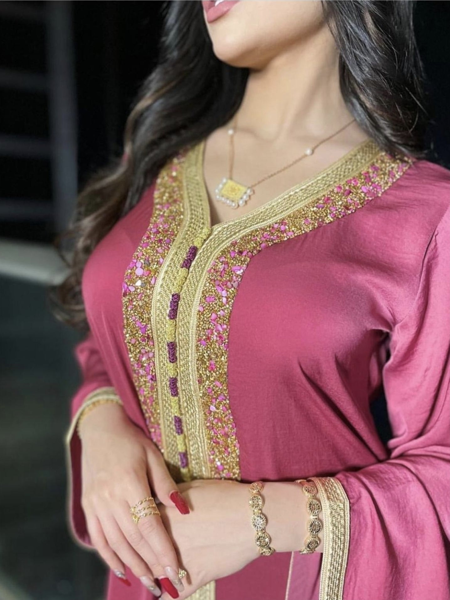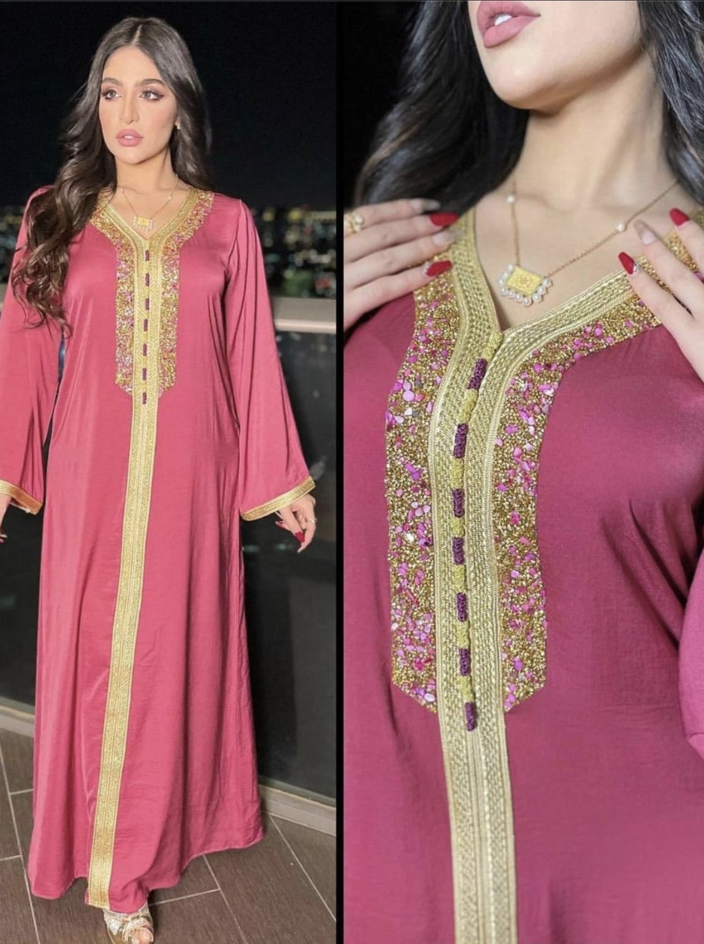 Upgrade your wardrobe with Jamila jalabiya, featuring elegant stitching and delicate embroidery. Proudly display your individuality with its unique splice design, perfect for any occasion. Stand out in style and confidence with Jamila.