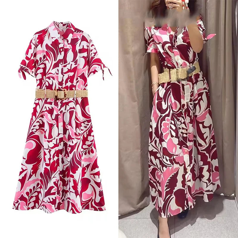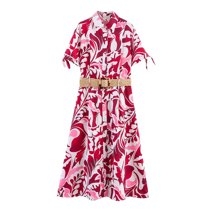 The Kaia dress offers a refined blend of elegance and casual style, showcasing a sophisticated print paired with sash and bow sleeve accents. Designed for versatility, it seamlessly transitions from summer holidays to professional office wear, providing a comfortable yet polished look ideal for modern women.