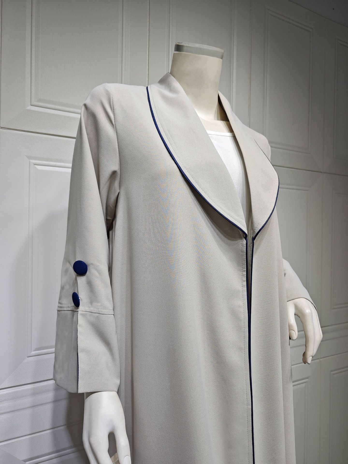 "Maha is the perfect abaya for any occasion. The unique patchwork lining and pleated back add a touch of elegance and sophistication. Expertly crafted with high-quality materials, this open abaya offers both style and comfort. Available now for all fashion-savvy individuals."