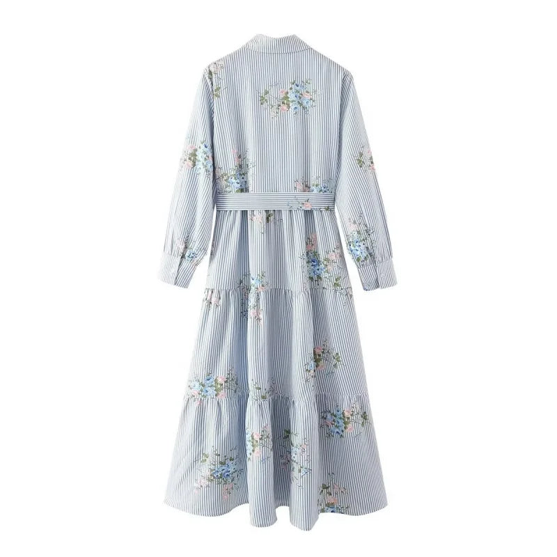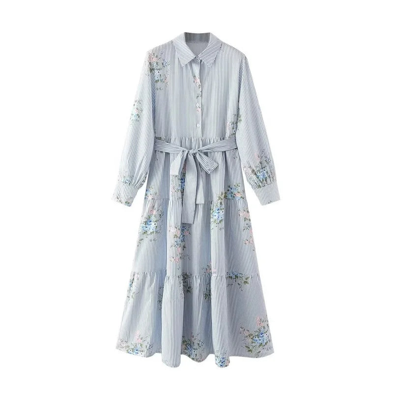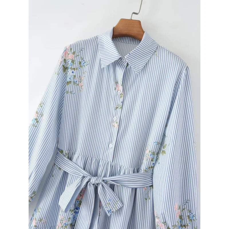 The Melanie shirt dress blends classic European and American styles with a modern twist. Featuring long sleeves, a striped base, and subtle floral accents, it offers a sophisticated yet effortless look. Ideal for seasonal wear, this dress provides both comfort and elegance, making it a versatile choice for various settings.