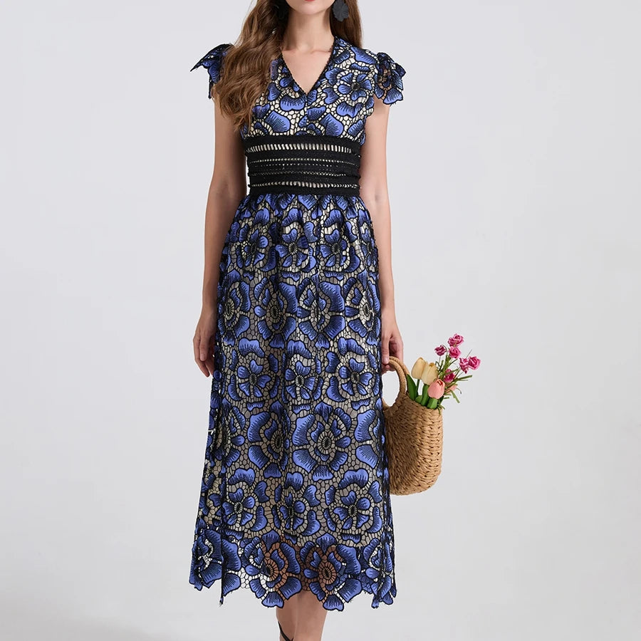Introducing Melissa, our Sexy Summer New Product! This V-neck Flying Sleeve dress is designed with a high waisted lace detail, perfect for any occasion. Upgrade your wardrobe and show off your style with this must-have piece.