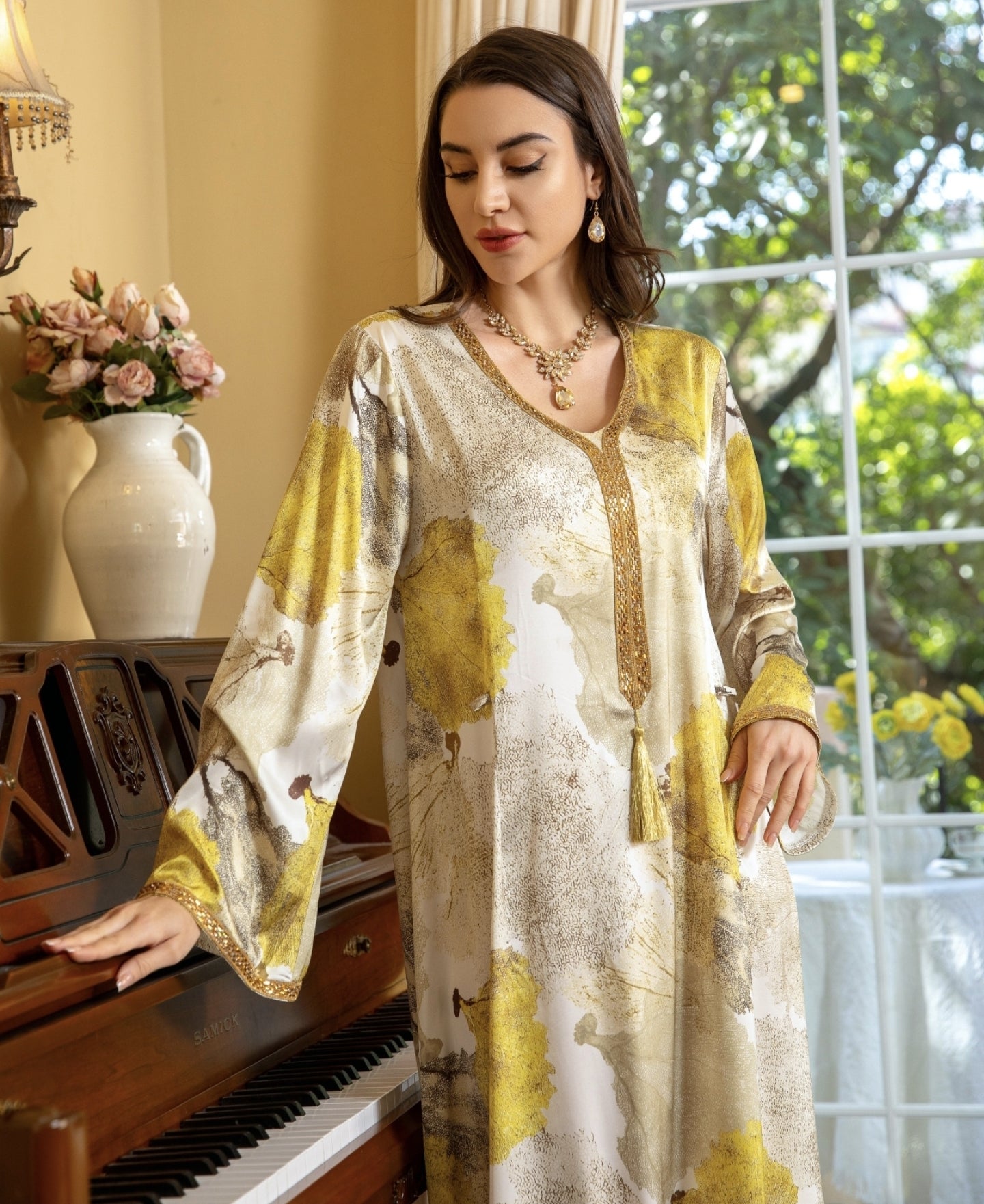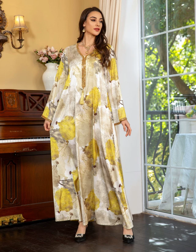 Indulge in luxury with our Noor satin rhinestone jalabiya. Made with premium materials and adorned with intricate rhinestones, this jalabiya exudes elegance and sophistication. Perfect for special occasions and events, you'll feel like royalty when wearing Noor. Elevate your fashion game today.
