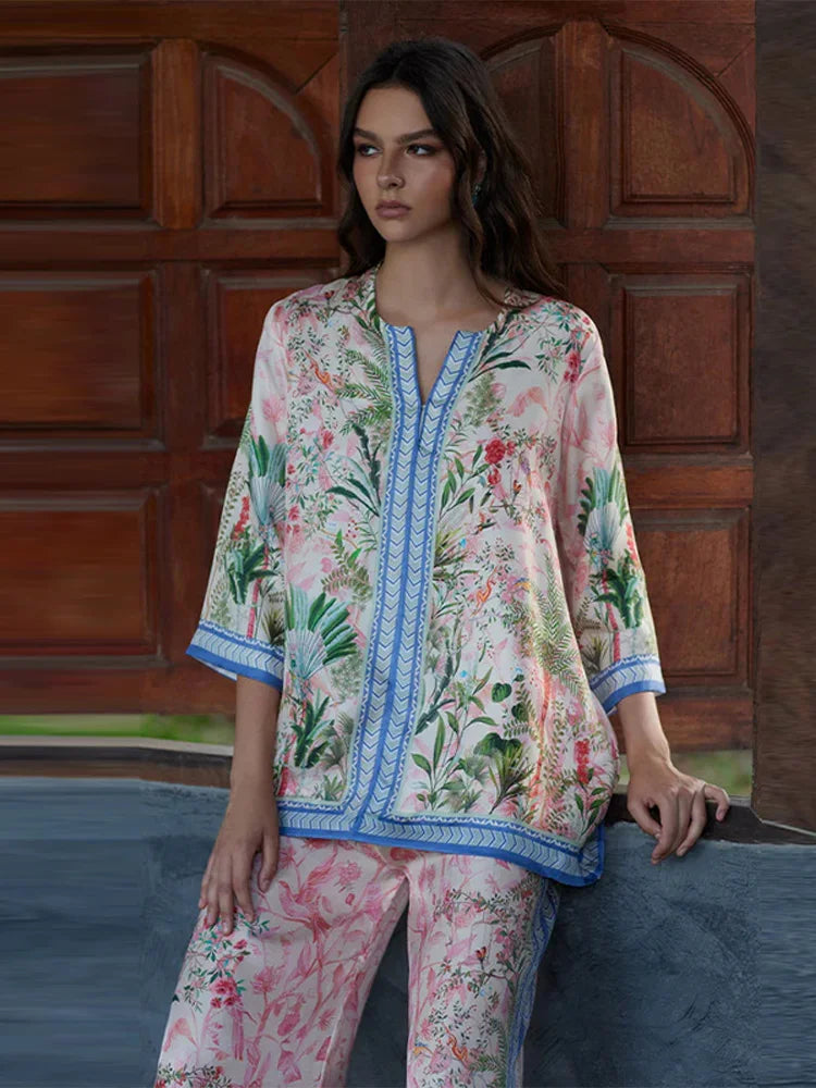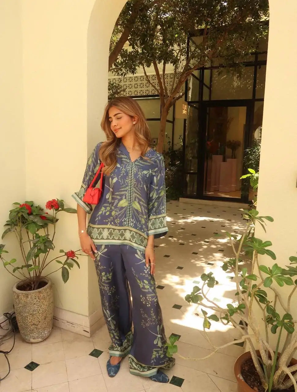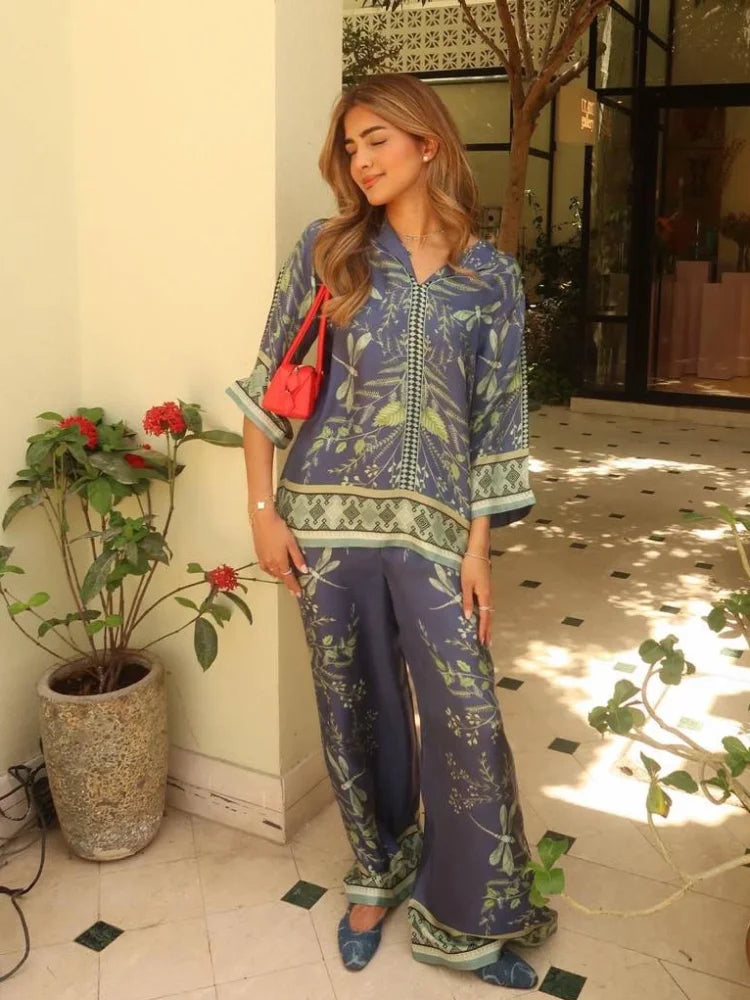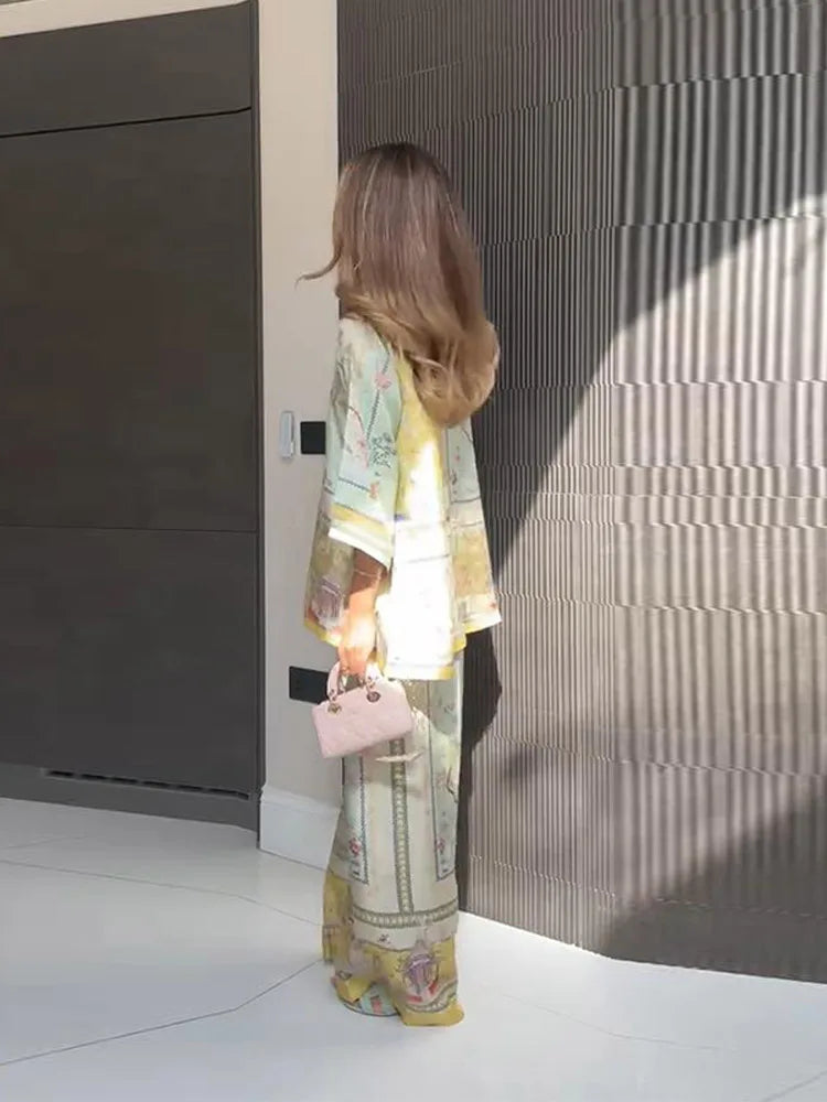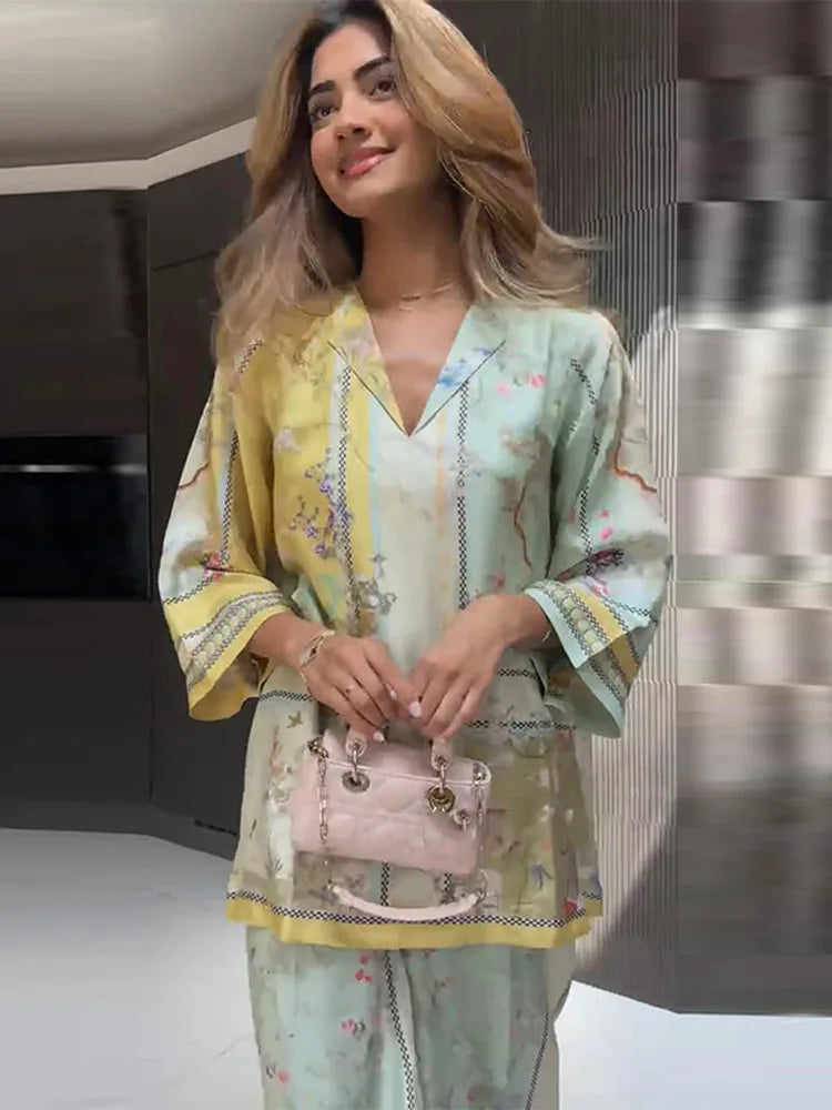 Discover effortless style with the Olivia set, featuring a printed loose V-neck short sleeve top paired with wide-leg loose pants. Crafted for comfort and breathability, this summer outfit is perfect for holiday getaways or beach days. The relaxed fit and lightweight fabric allow freedom of movement, keeping you cool while maintaining a chic, contemporary look. Elevate your warm-weather wardrobe with this versatile and stylish ensemble.