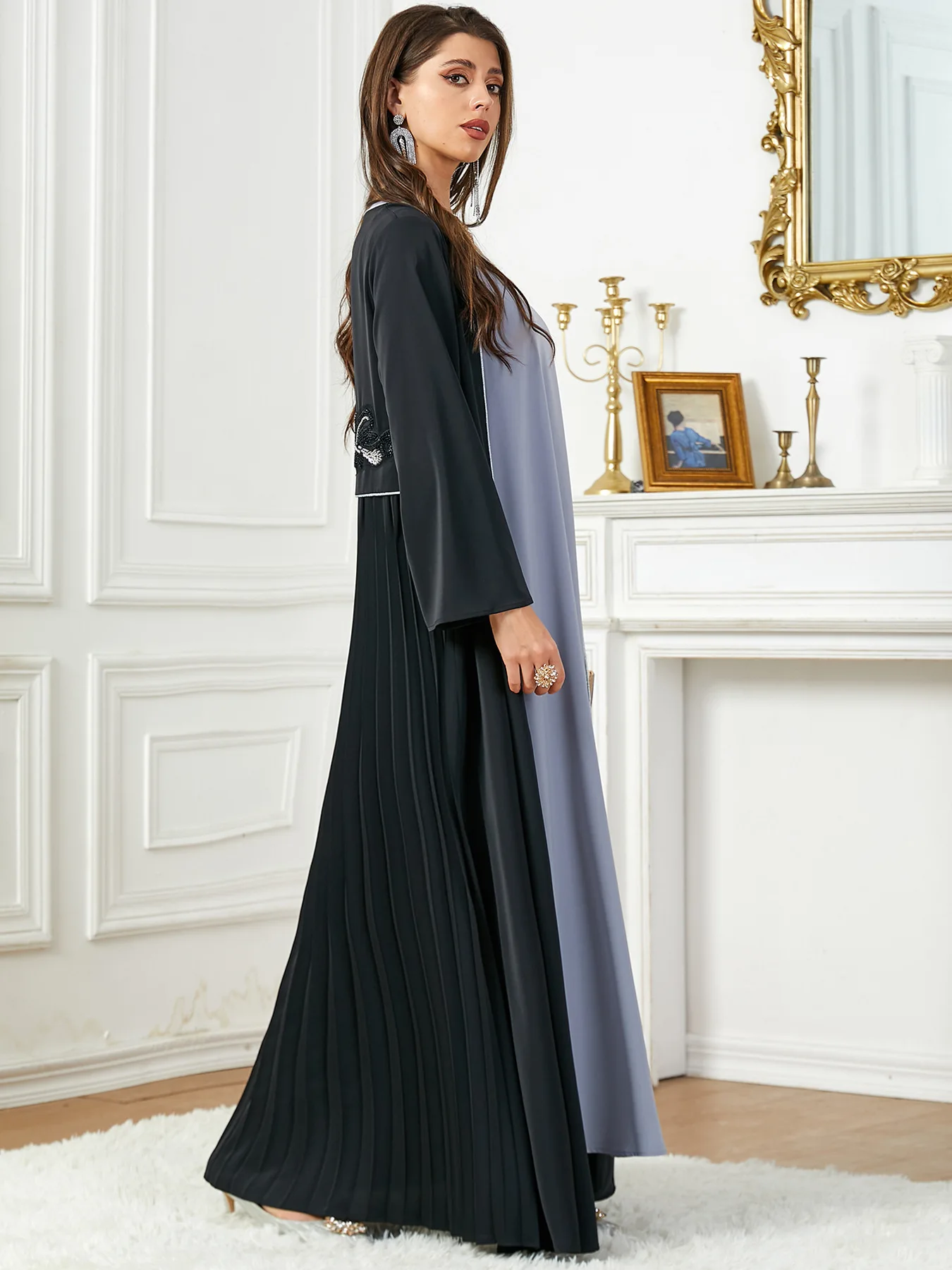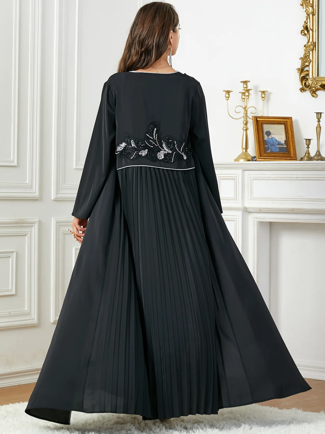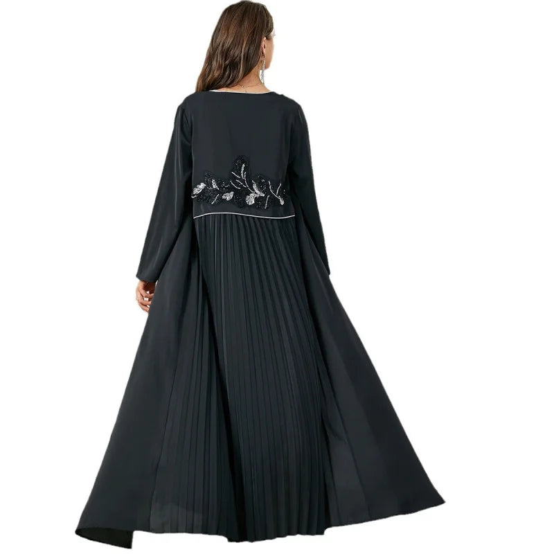 Safiya is a sophisticated and beautifully designed black abaya. Its intricate floral embroidery, adorned with delicate beads, adds an elegant touch to the front and back of the abaya. The lower back design features pleats for a stylish look. Perfect for any occasion.