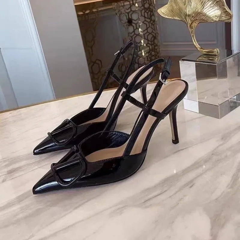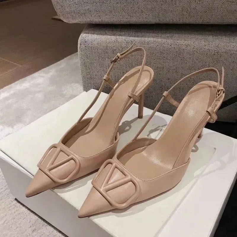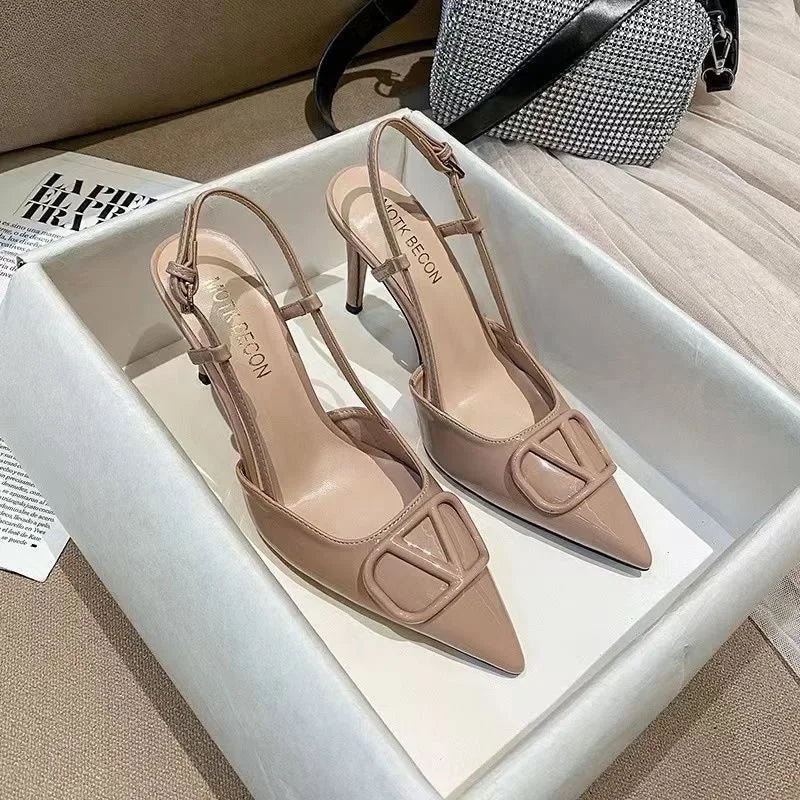 Elevate your spring and summer wardrobe with these elegant pointed-toe high heels. Featuring a sleek V buckle and a slender heel, these French-inspired sandals combine sophistication with modern design. The bare arm style and covered toe offer a refined look perfect for both day and evening occasions. Crafted to enhance your silhouette, they provide a graceful finish to any outfit.