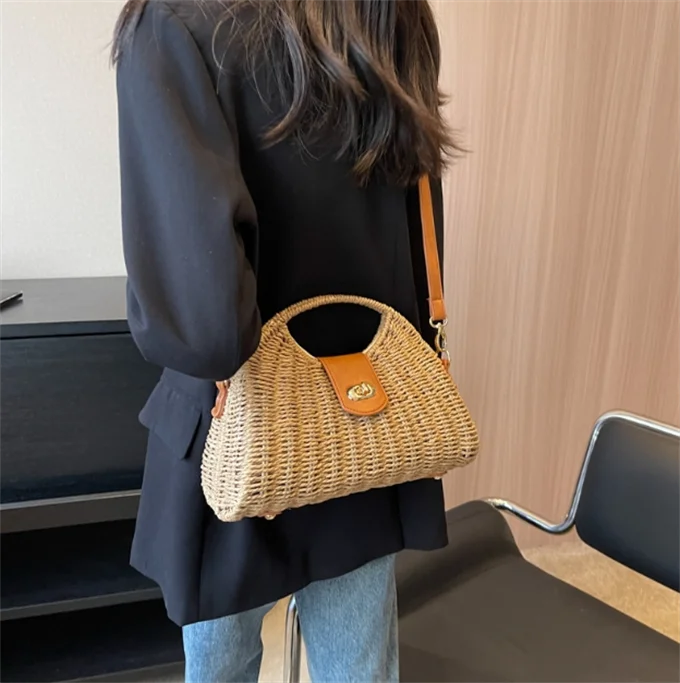 This Summer Bali straw clutch combines expert craftsmanship with effortless boho style. Hand-woven into a distinctive shell shape, it offers lightweight durability ideal for beach or holiday use. The versatile shoulder crossbody design ensures comfortable carry, making it a refined accessory for sun-soaked days and casual evenings.