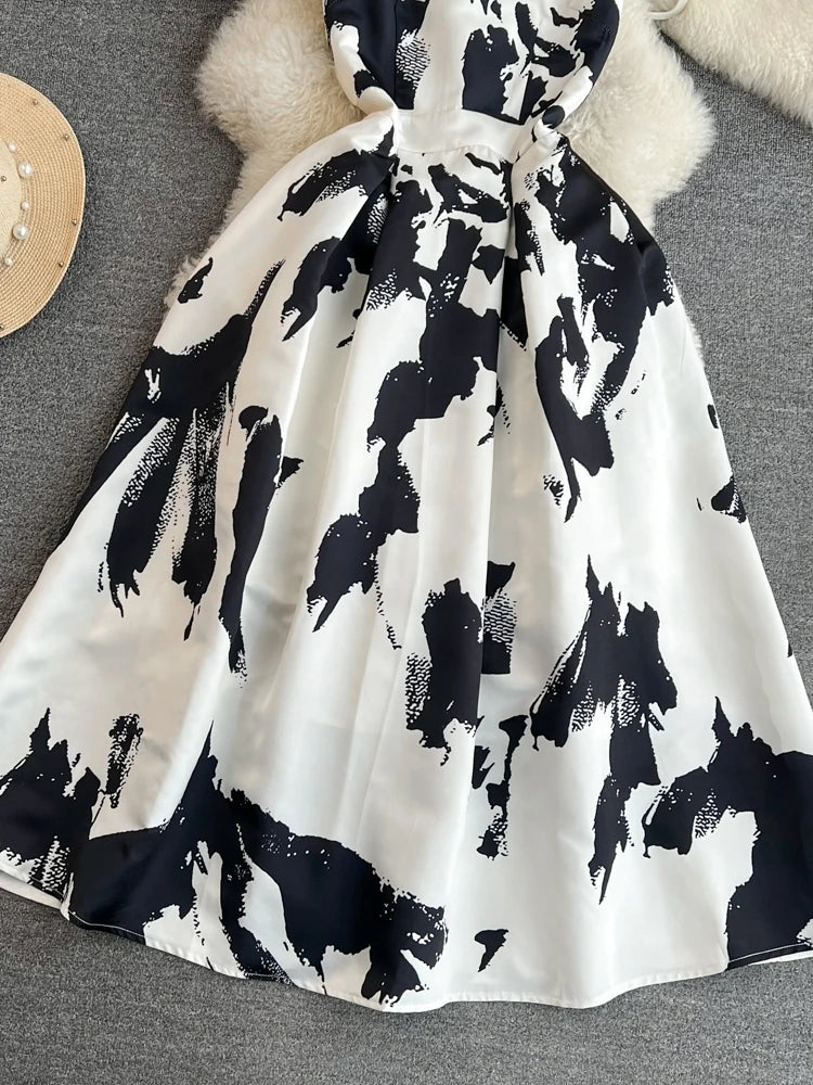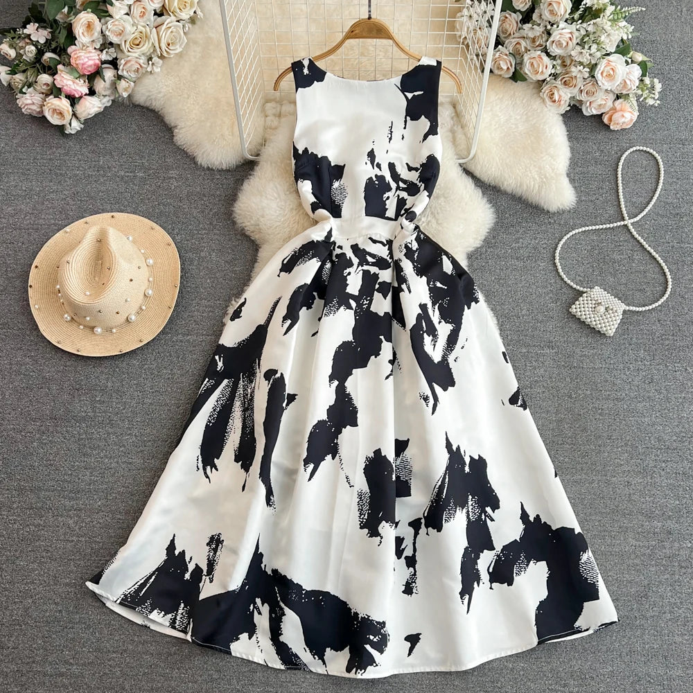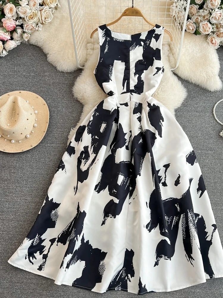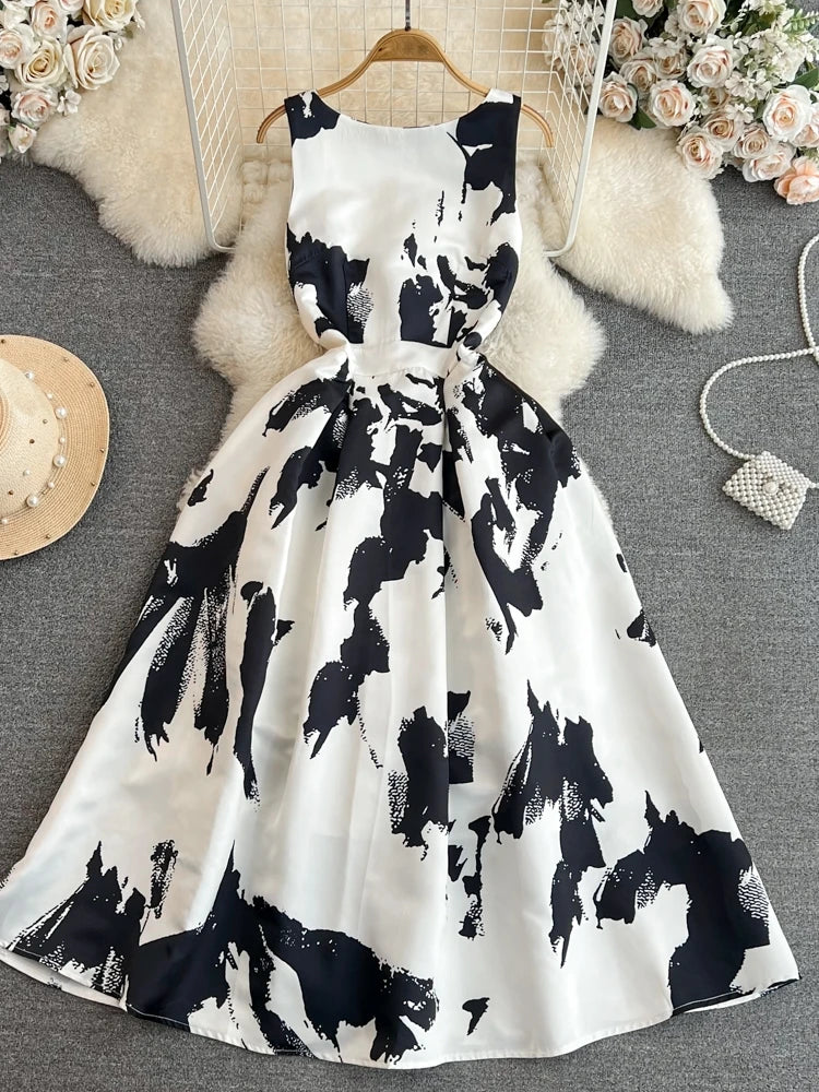 The Sussie dress blends elegance and practicality in a chic A-line silhouette with short sleeves, ideal for versatile styling. Its round neck and high waist offer a refined look tailored for the 18-24 age group. The distinctive watercolor print enhances its unique appeal, while built-in pockets and an internal lining add thoughtful functionality. Made from premium materials, this dress ensures lasting comfort and sophistication, making it perfect for summer occasions.
